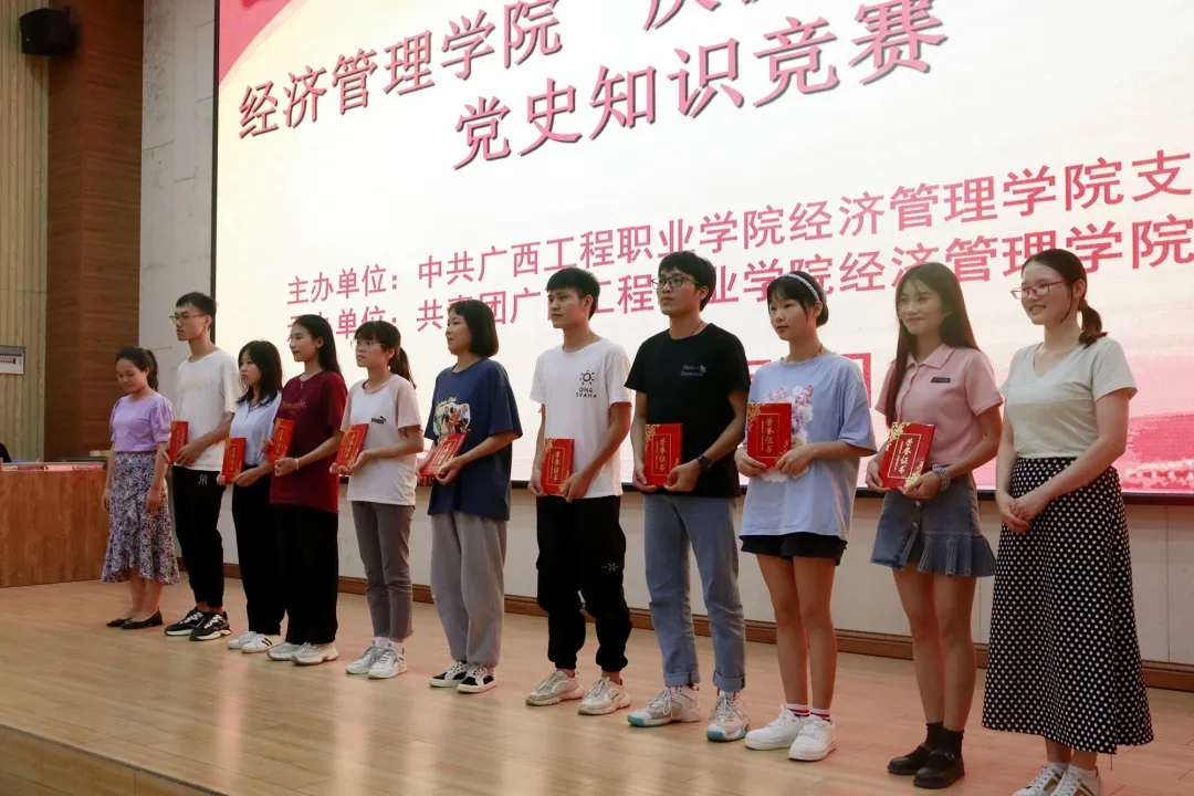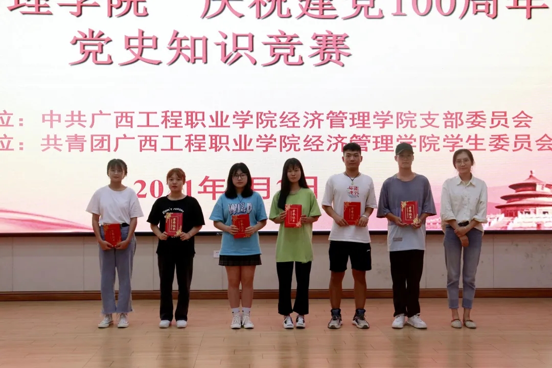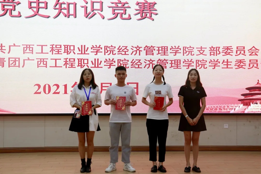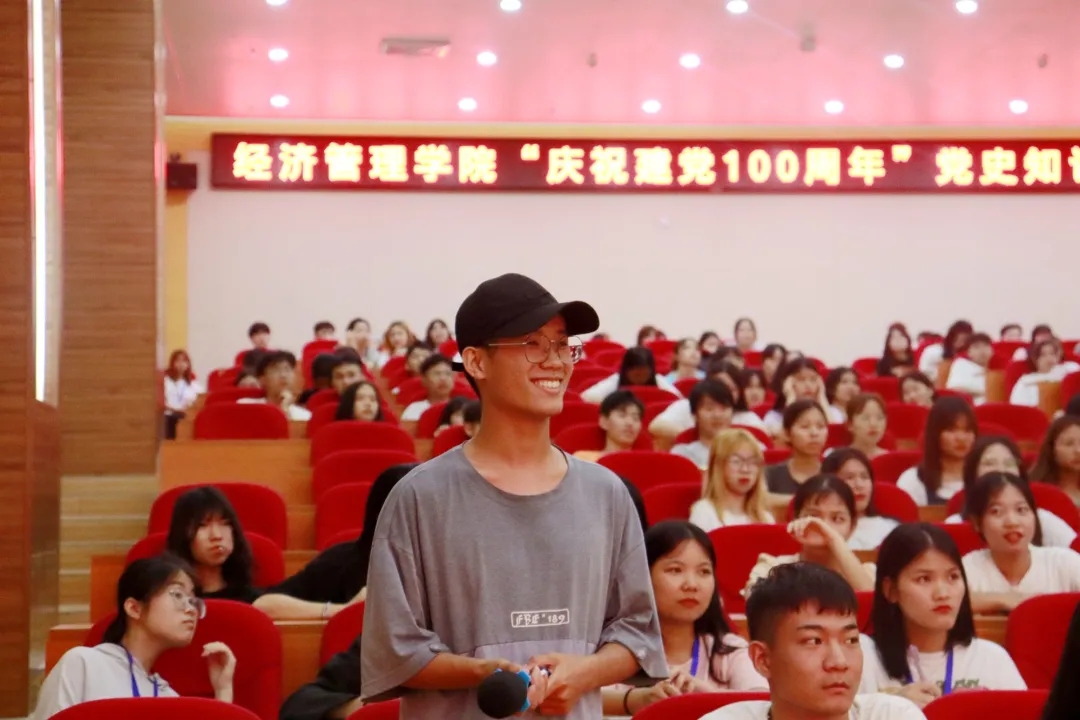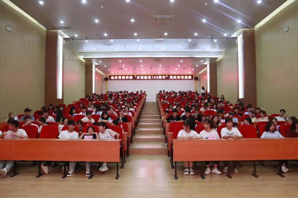 为庆祝中国共产党建党100周年,引导广大学生把党的历史学习好、总结好,把党的成功经验传承好、发扬好,加深对党的历史理解和把握,加深对党的理论理解和认识,厚植爱党、爱国、爱社会主义的情感,让红色基因、革命薪火代代相传,2021年6月2日晚,beat365唯一官网经济管理学院在图文信息大楼学术报告厅举行“庆祝建党100周年”党史知识竞赛。