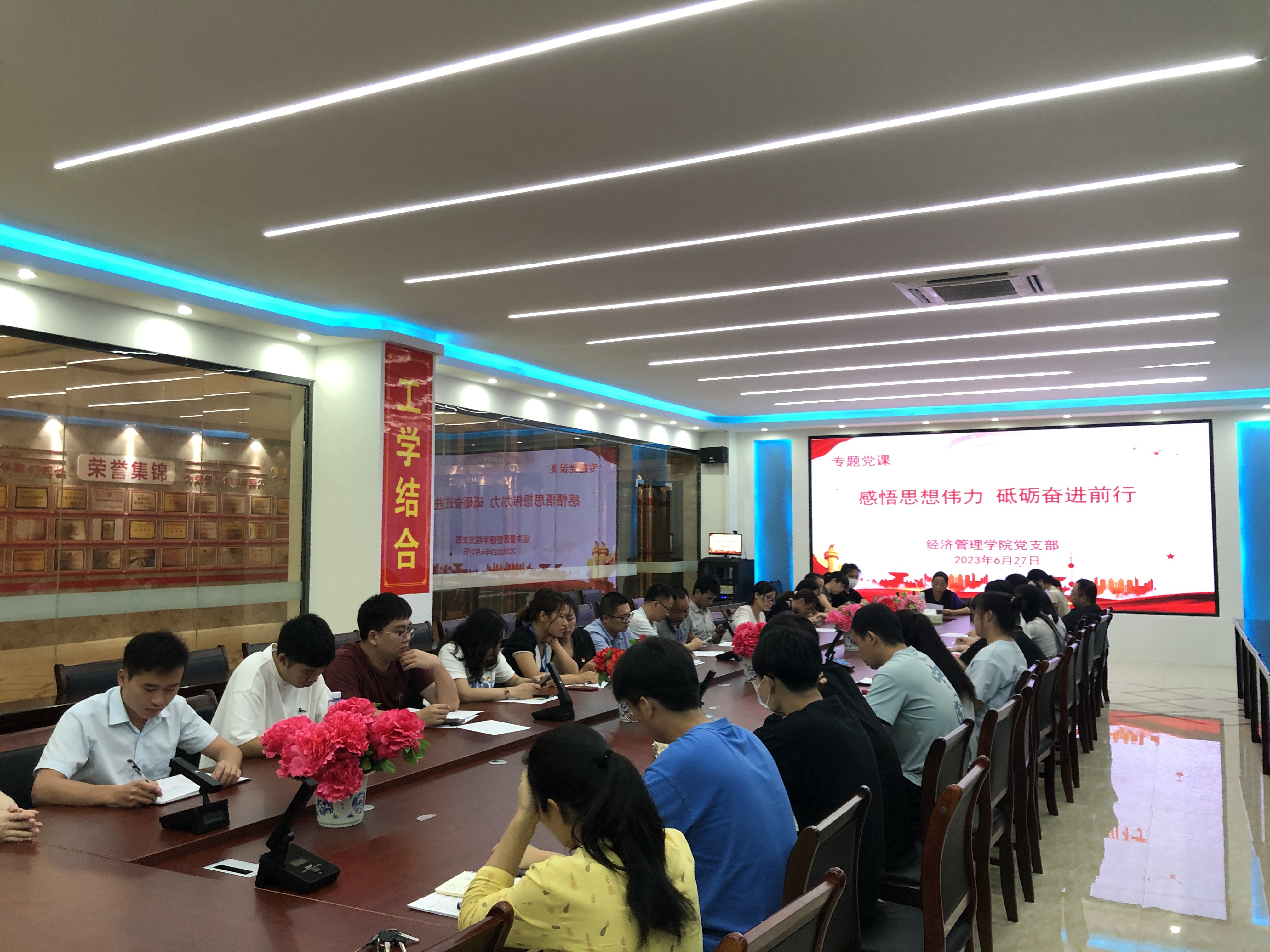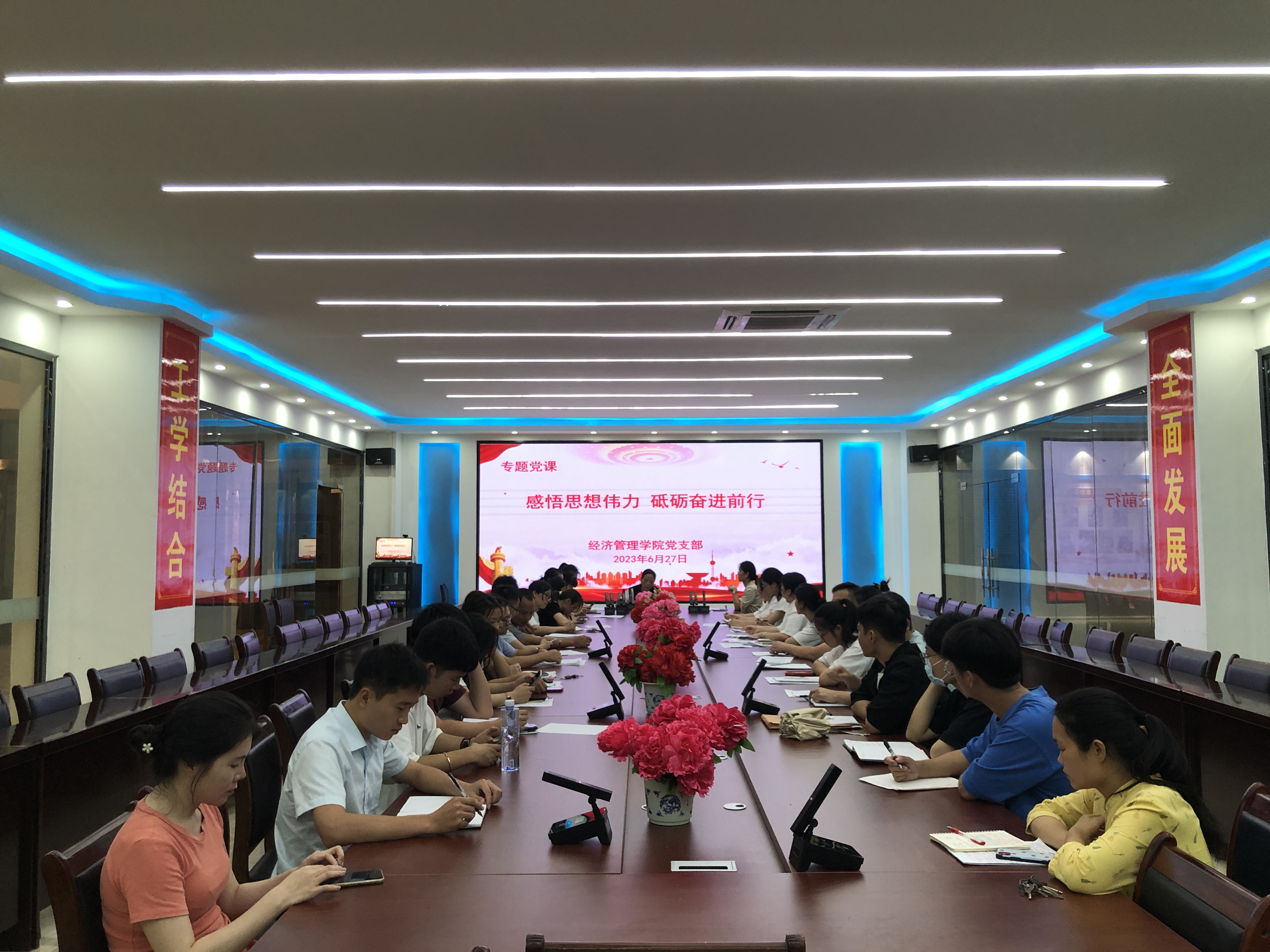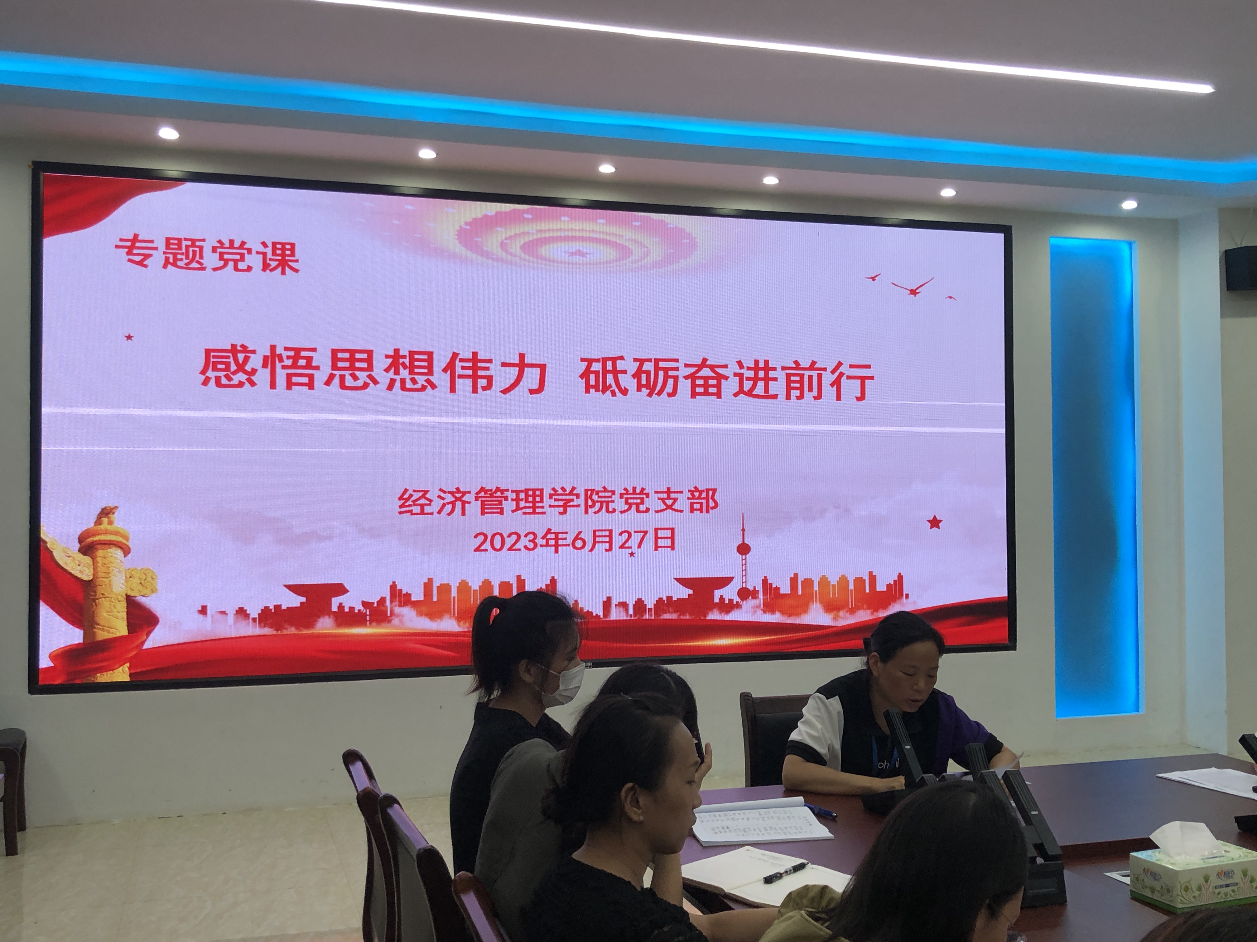 在“七一”即将来临之际,为深入学习宣传贯彻习近平新时代中国特色社会主义思想和党的二十大精神,6月28日经济管理学院党支部书记庞英连以“感悟思想伟力 砥砺奋进前行”为主题,为支部全体党员讲授主题教育专题党课。