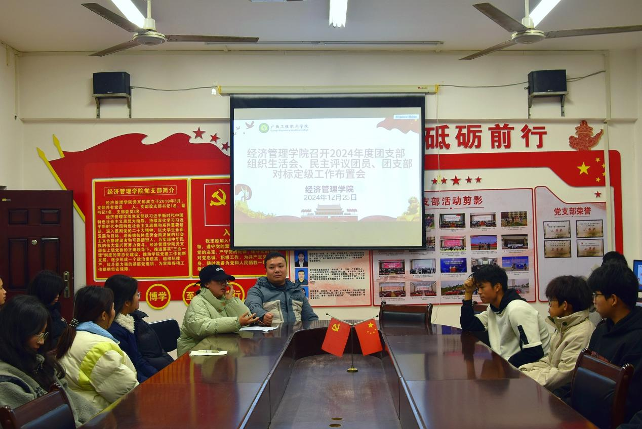 12月25日,经济管理学院在学院302会议室召开了2024年度团支部组织生活会、民主评议团员、团支部对标定级工作布置会,对团员和青年主题教育专题组织生活会和民主评议工作进行全面安排。本次会议由学院分团委书记李东英主持召开。