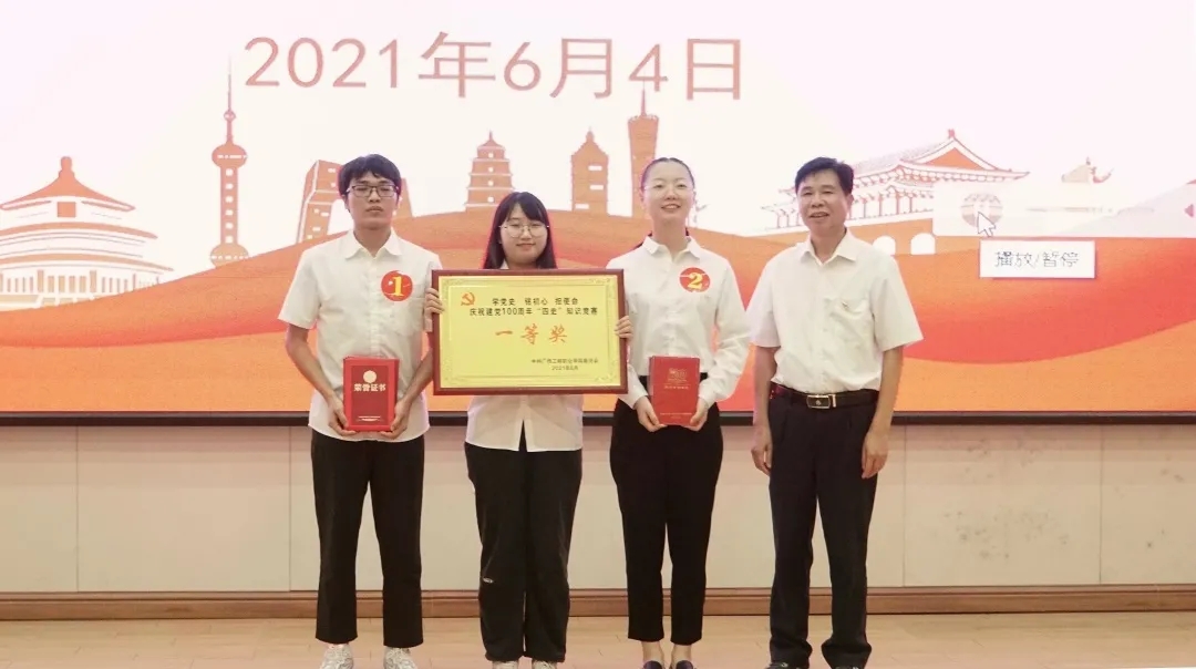 6月4日晚,学校在图文信息大楼一楼学术报告厅举行“学党史 铭初心 担使命——庆祝建党100周年‘四史’知识竞赛”。