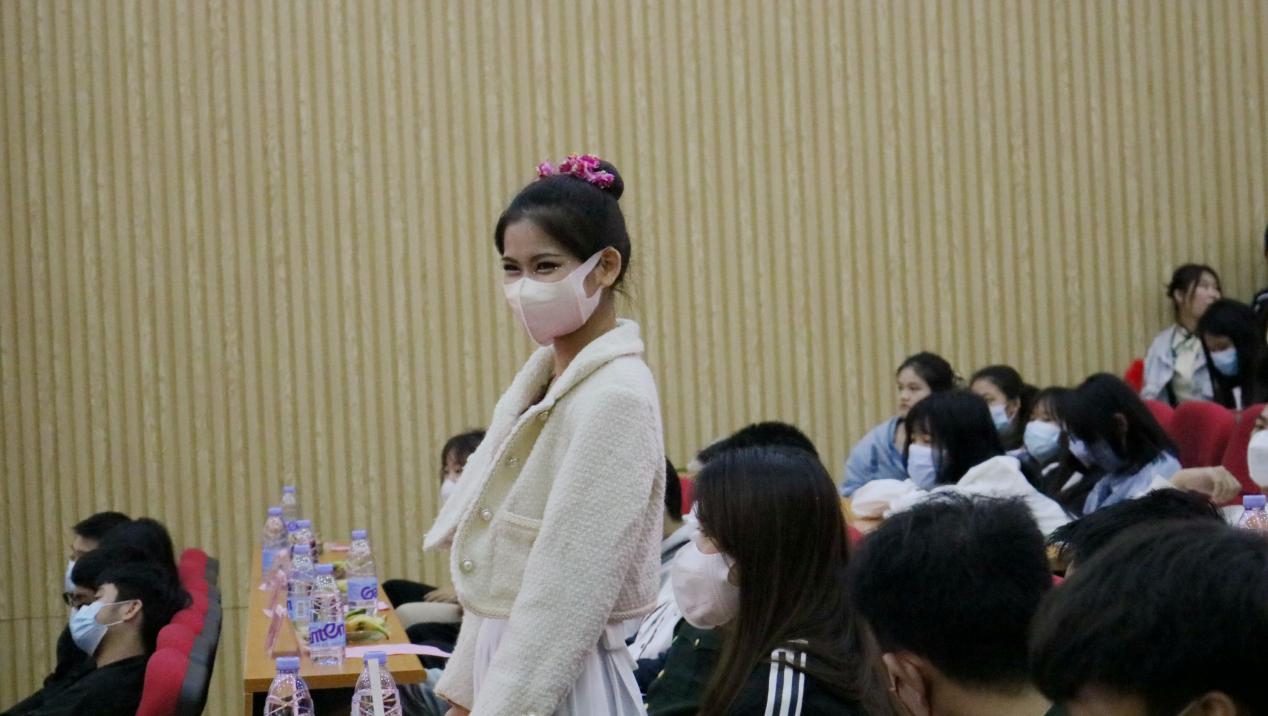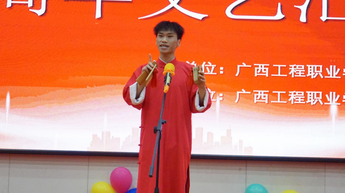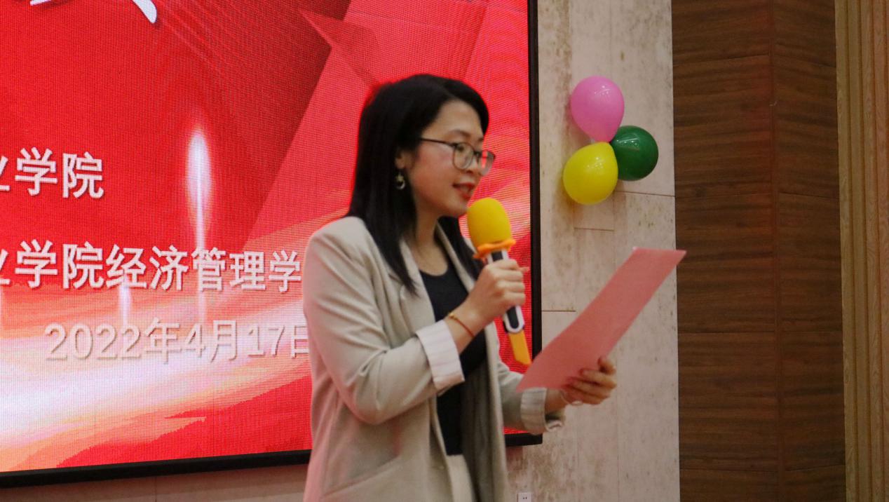 图:经济管理学院副院长庞英莲宣布文艺汇演正式开始