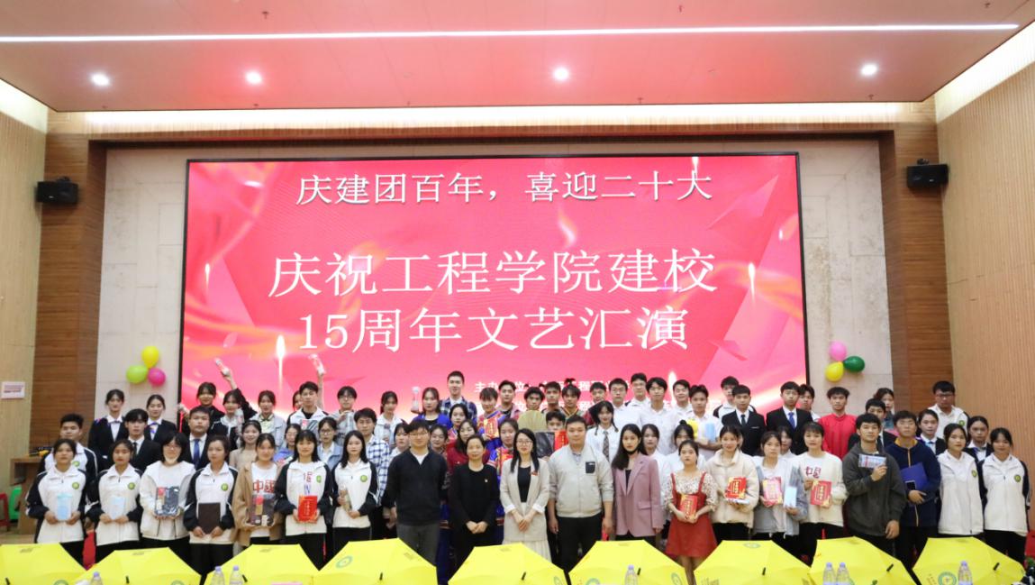 “十五年风雨兼程,十五年自强不息” 经济管理学院于2022年4月17日下午15:00,在学校图文信息大楼1号报告厅隆重举行“庆建团百年,喜迎二十大,贺工程15周年校庆”文艺汇演。出席参加此次活动的领导、嘉宾有:党委副书记黄秋霞、经济管理学院副院长庞英连、各二级分院团委书记及经济管理学院全体教师和各学生会社团代表。