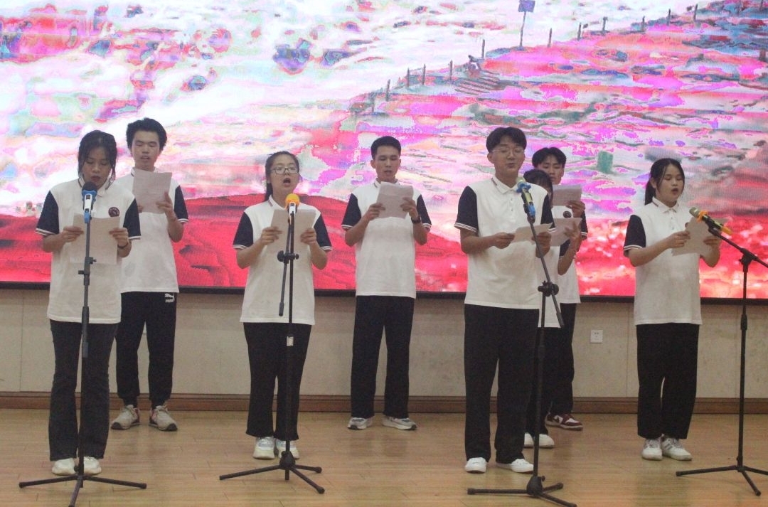 20会计3班的同学她用最响亮的声音、最饱满的激情诵读经典爱国诗词《中华颂》,赞美了家乡建设的新成就。