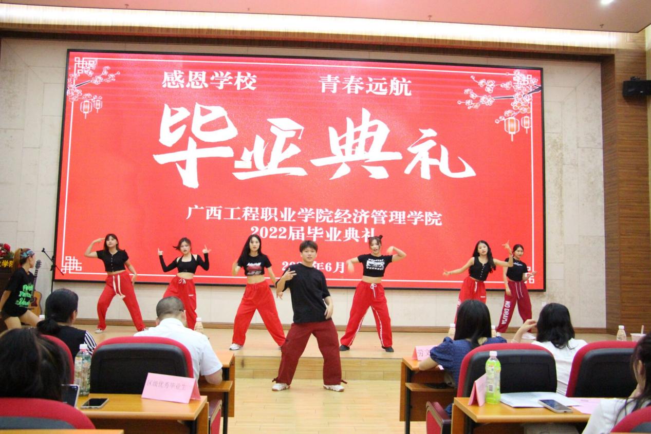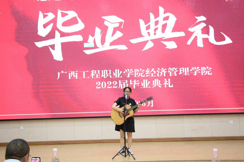 学校纪委书记、副校长彭高彬、学校党委委员、经济管理学院院长庞英连、经济管理学院办公室主任雷红、经济管理学院分团委书记李东英;经济管理学院老师,陈桃老师、劳文文老师、谢彩英老师、吕艳丽老师、董文凯老师、廖娇老师、覃兰兰老师、杨尚晶老师、凌美光老师、潘金玲老师、莫婷婷老师、卢冠戎老师、农李菱老师、黄雯老师,领导及老师与该院各班同学和2019届毕业生代表共同参加了本次毕业典礼。本次毕业典礼由2020级会计专业陈植辉同学主持。