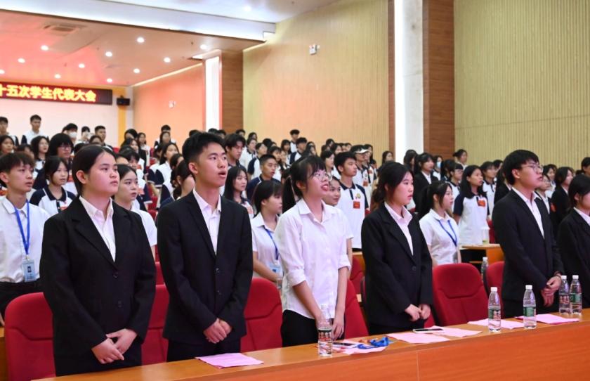 参会人员:各代表团代表,第十五届学生会主席团参加本次大会。大会由黄丹主持。