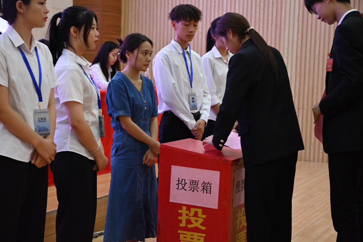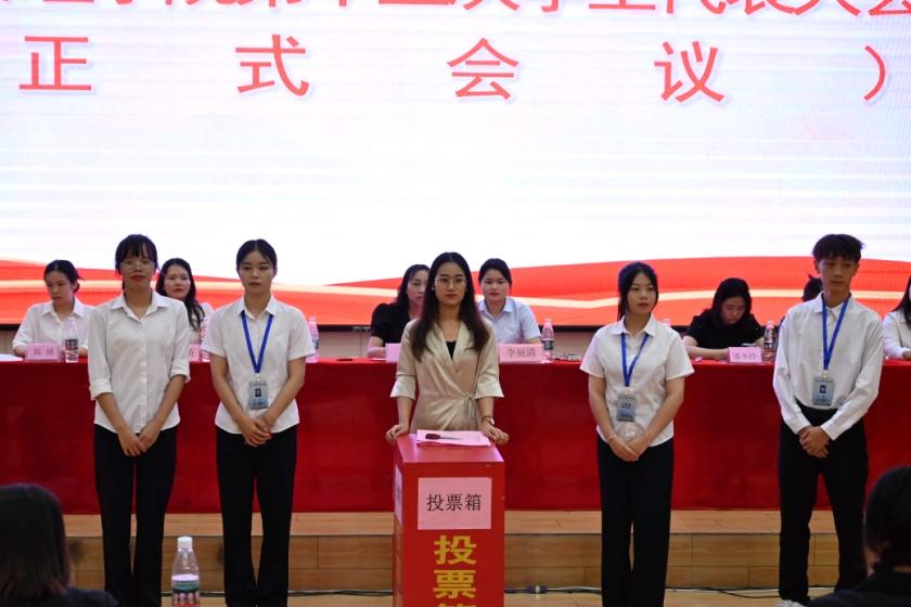 经济管理学院杨尚晶宣读beat365唯一官网经济管理学院第十五次学生代表大会总监票人、监票人、总计票人、计票人名单(草案)