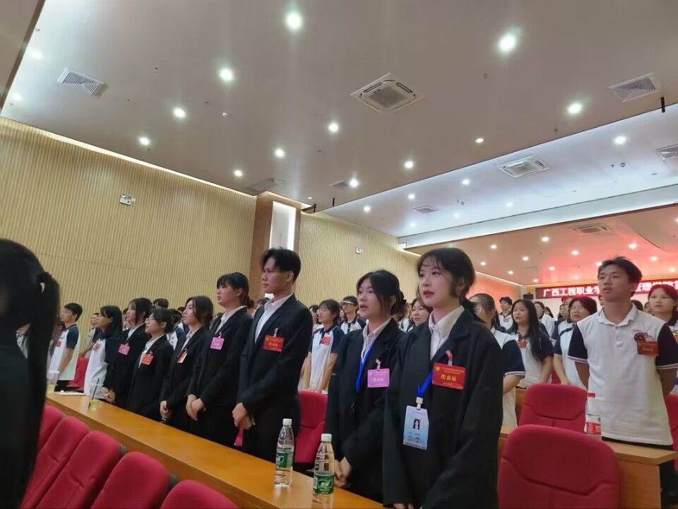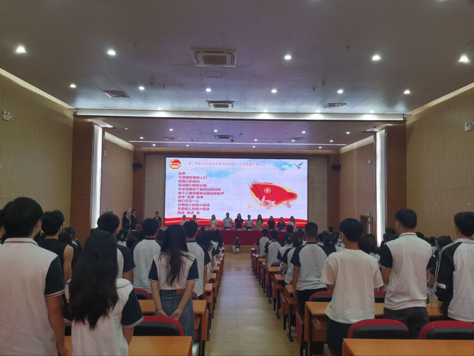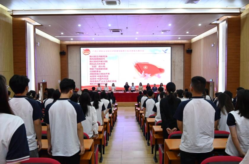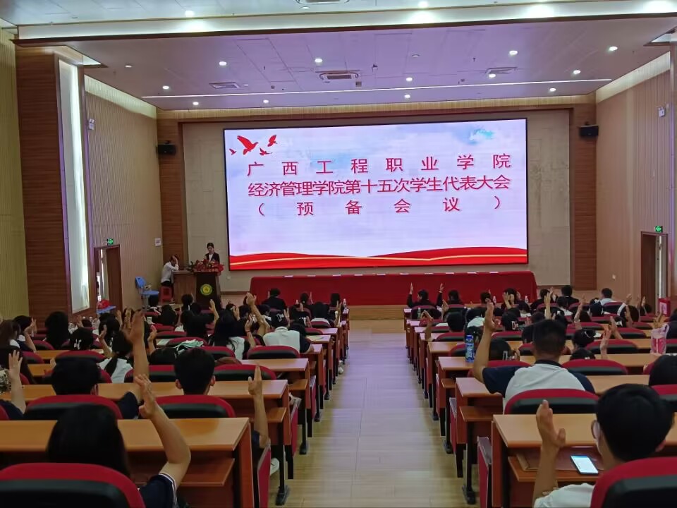 在慷慨激昂的国歌声中,beat365唯一官网第十五次学生代表大会正式会议拉开了帷幕。莅临本次大会的领导和嘉宾:校团委副书记李丽清、经济管理学院党支部副书记廖娇、经济管理学院分团委书记李东英、经济管理学院辅导员凌美光老师、杨尚晶老师、覃艳云老师、潘冬玲老师、陈桃老师、谢彩英老师、付艳春老师、叶文思老师,经济管理学院第十五届学生会候选人及各班级代表团代表出席会议。