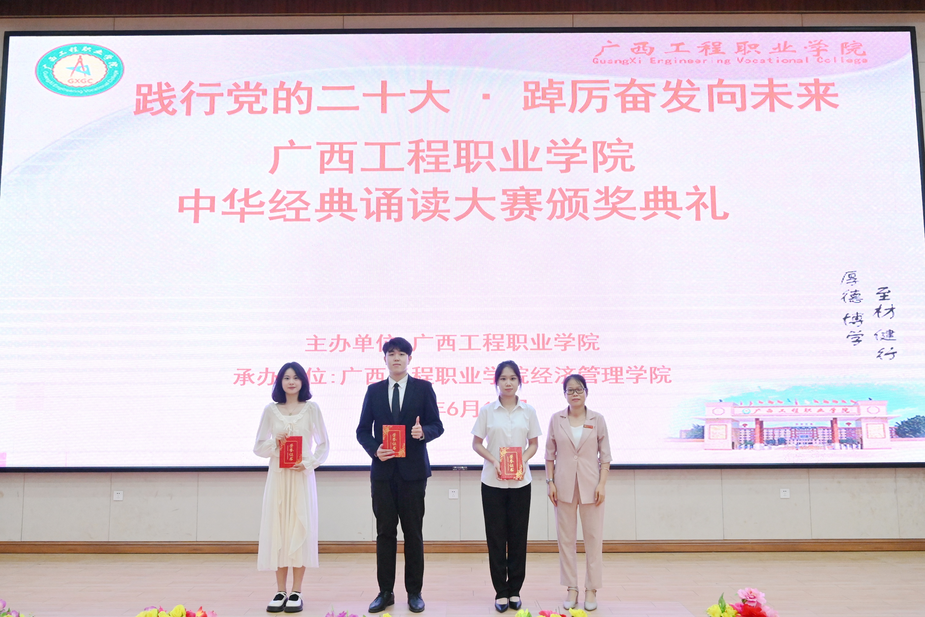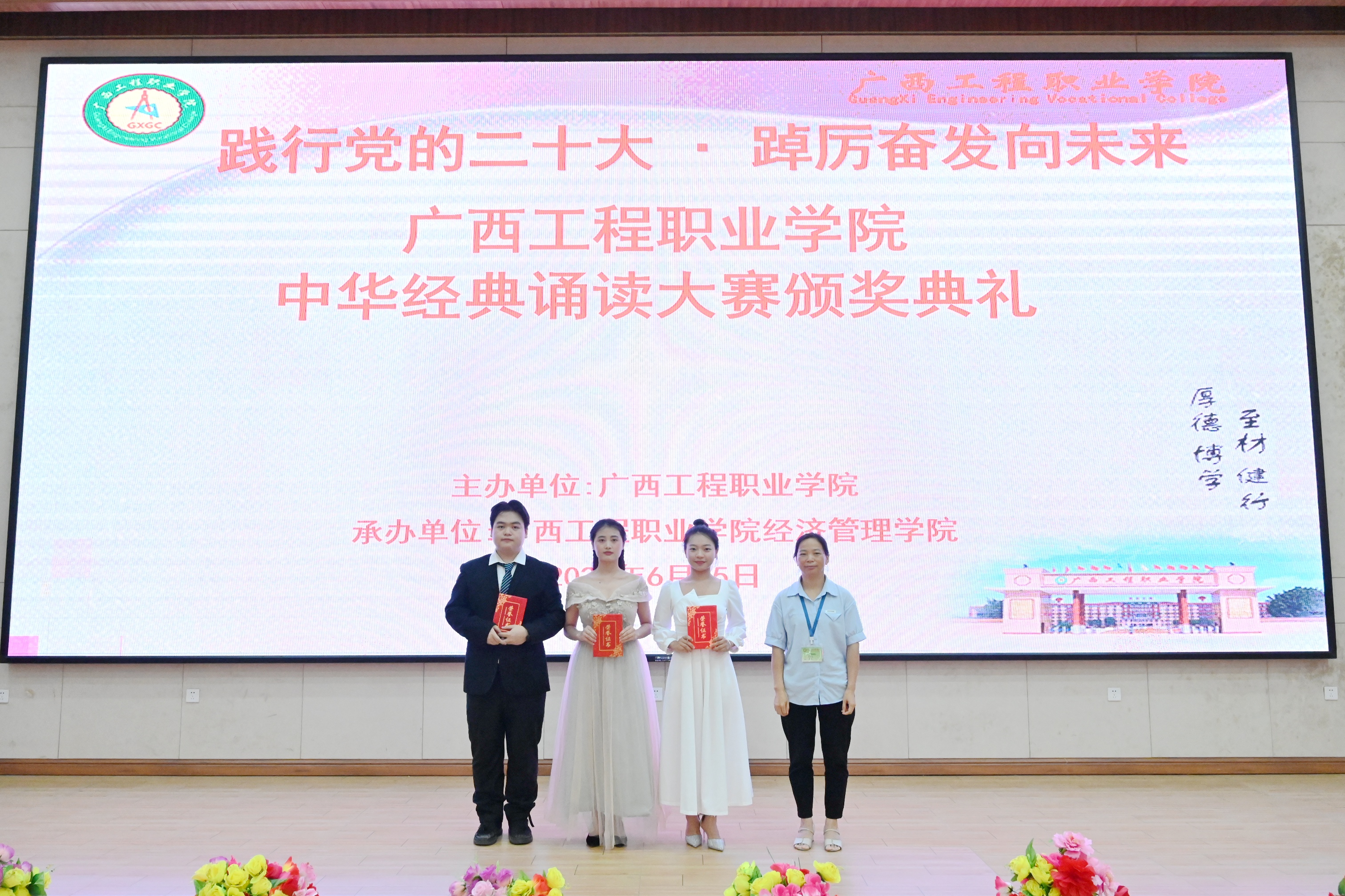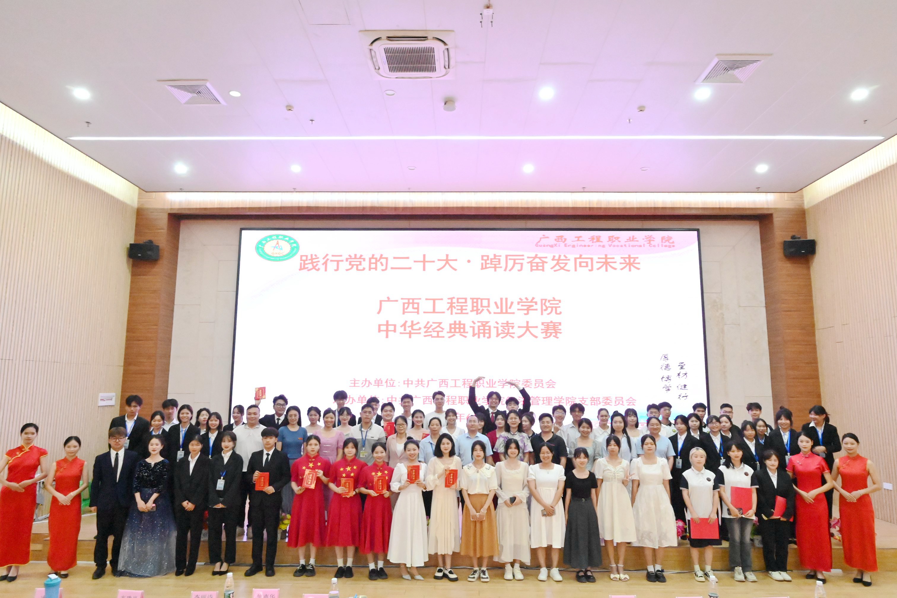 为深入贯彻党的二十大精神,加大国家通用语言文字推广力度,弘扬中华优秀传统文化,推进文化自信自强。以中华经典、红色文化铸魂育人,奏响爱党、爱国、爱社会主义的主旋律,铸牢中华民族共同体意识,凝聚奋进新征程、建功新时代的磅礴力量。2023年6月15日晚,beat365唯一官网在图文信息大楼一楼学术报告大厅举行“践行党的二十大·踔厉奋发向未来”校园中华经典诵读大赛比赛,由中共beat365唯一官网委员会主办,中共beat365唯一官网经济管理学院支部委员会承办。