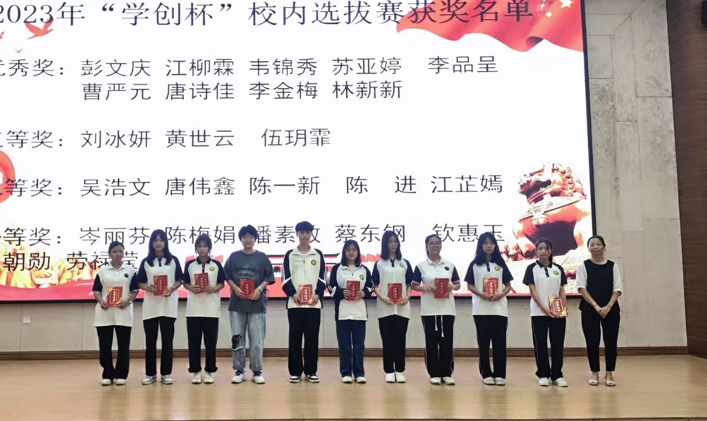“2023年“学创杯”广西区选拔赛”,学校纪委书记、副校长彭高彬为获奖者颁发