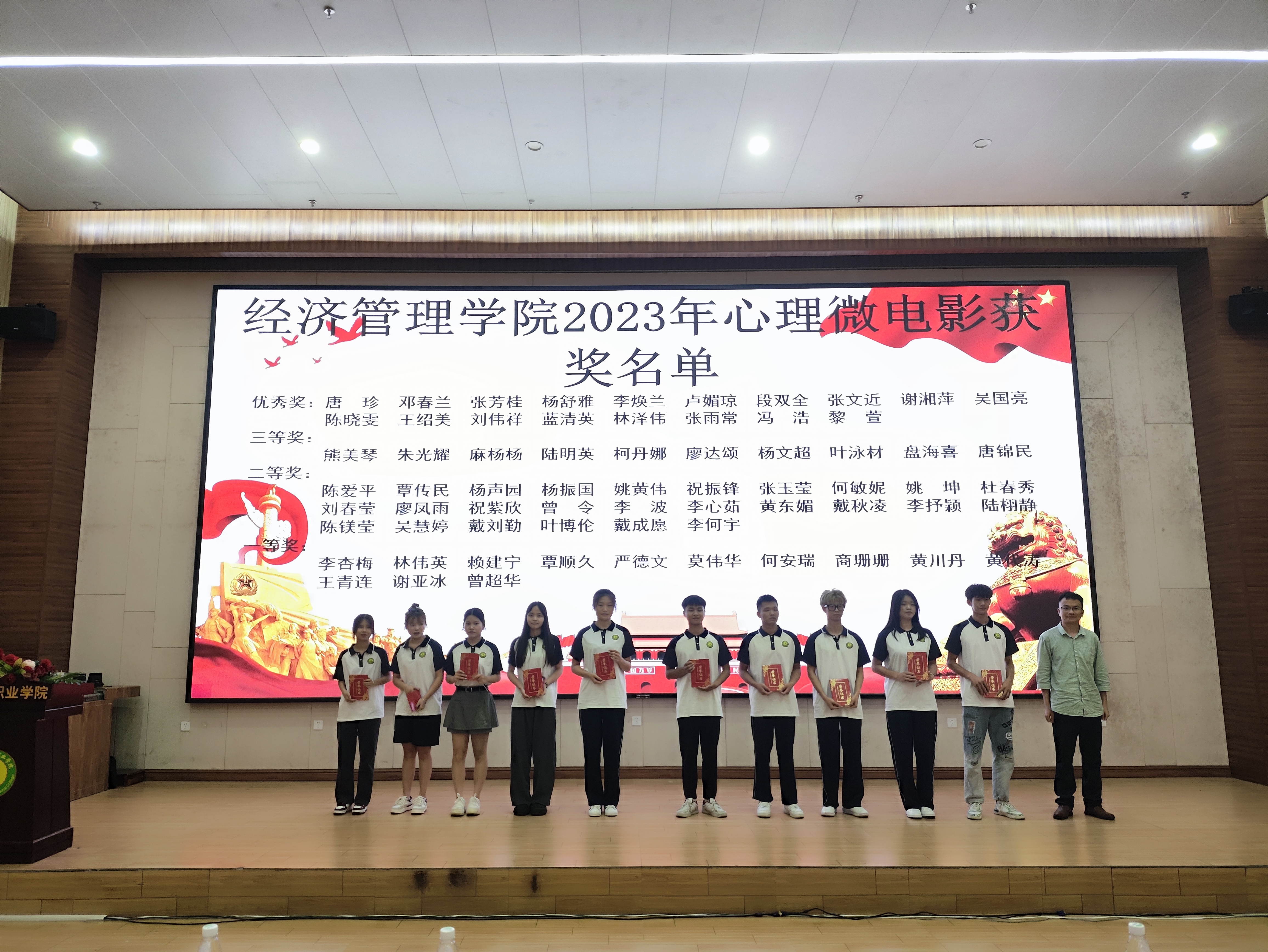 “经济管理学院2023年心理微电影”黄金俊老师为获奖者颁发