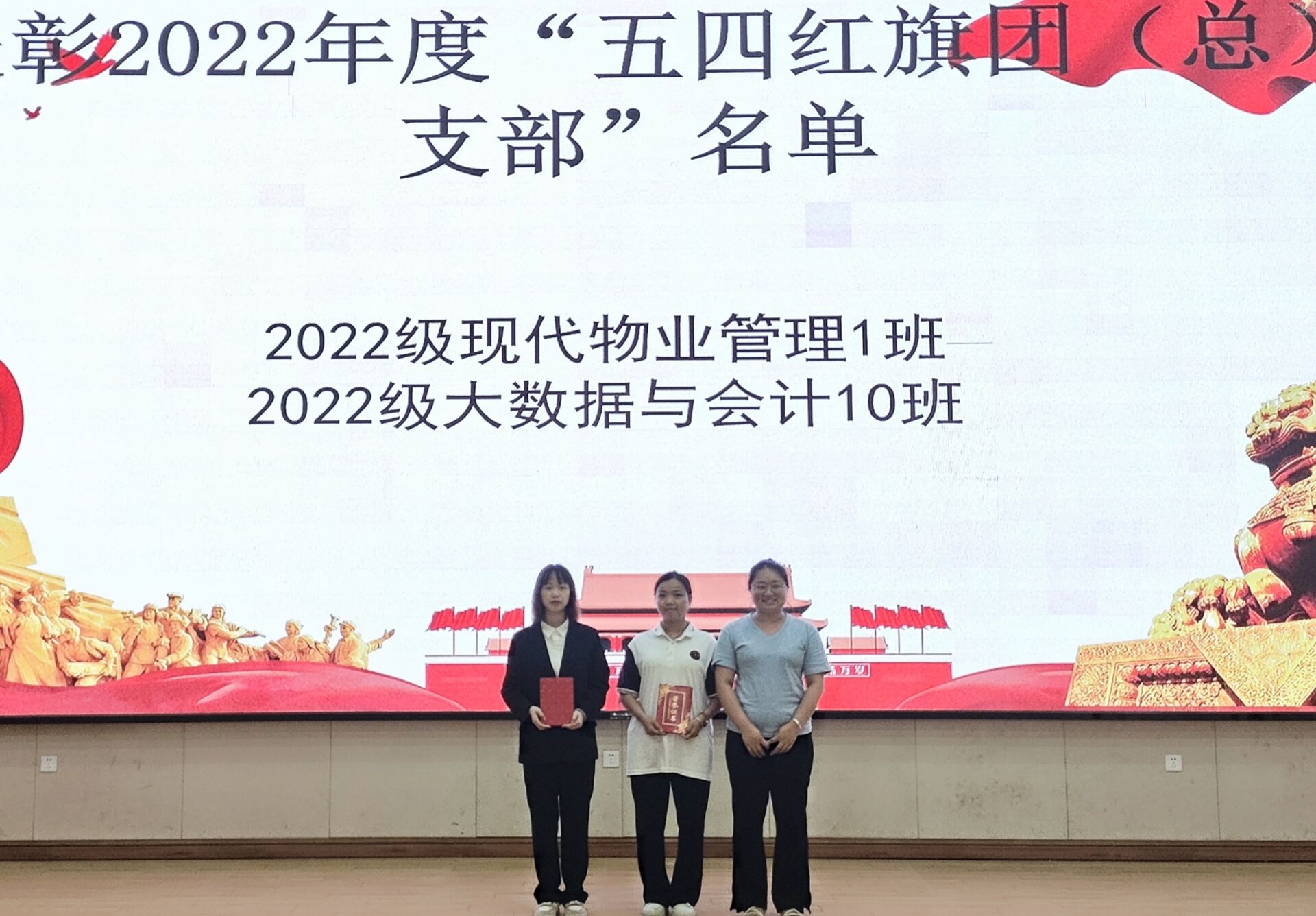 2022年度“五四红旗团(总)支部”石娜老师为获奖者颁发
