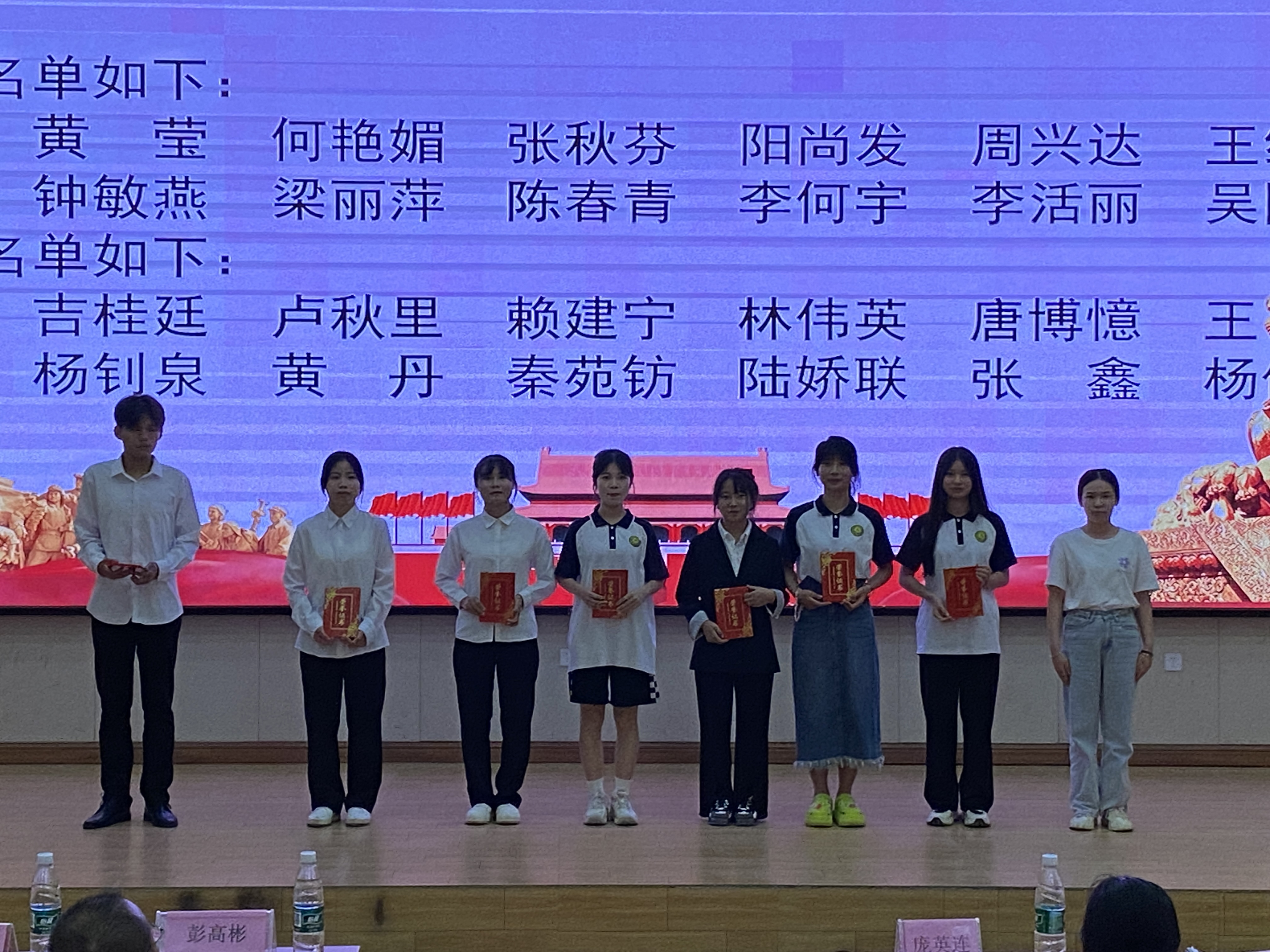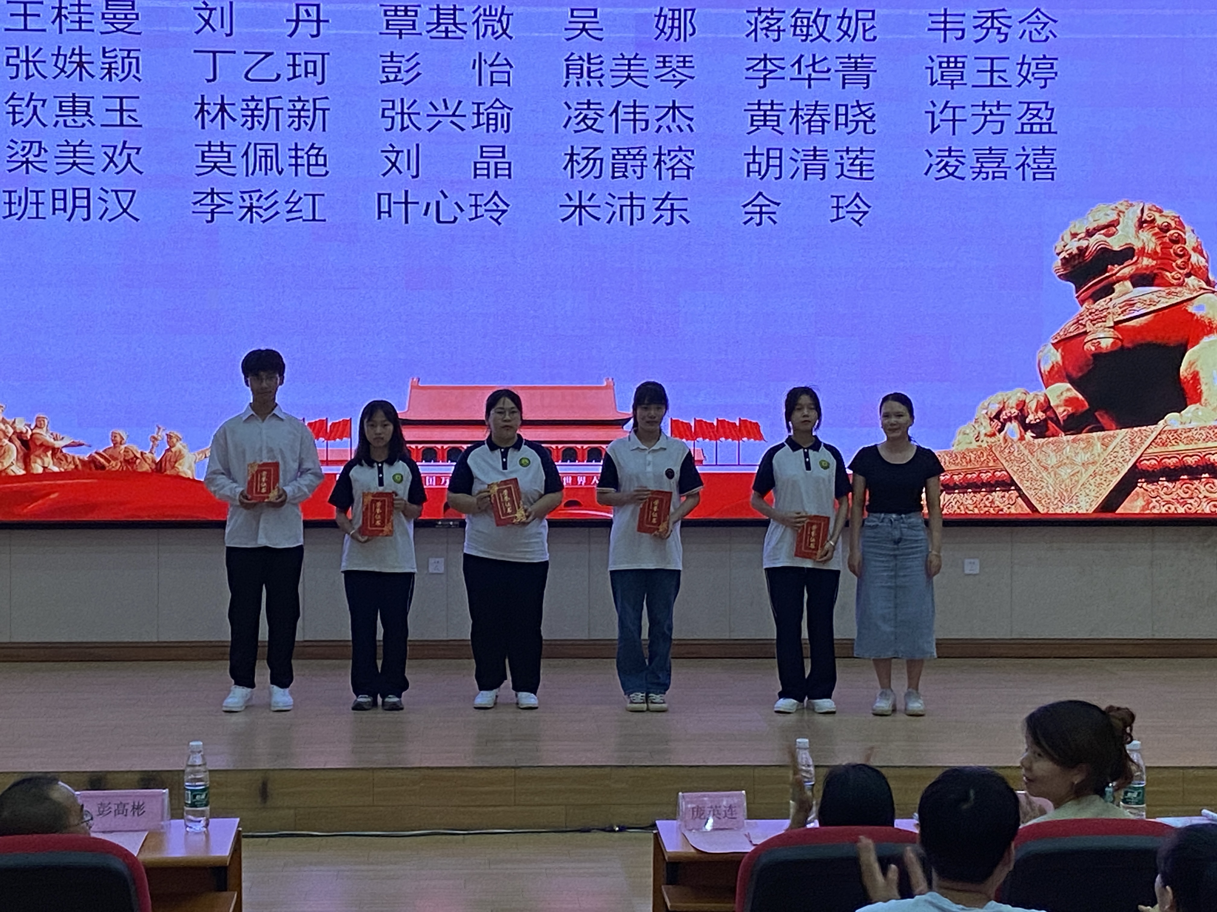 学校纪委书记、副校长彭高彬;经济管理学院党支部书记、院长庞英连;经济管理学院党支部副书记廖娇;经济管理学院办公室主任雷红;经济管理学院学生科科长李东英,以及经济管理学院全体辅导员、老师、各班学生代表。