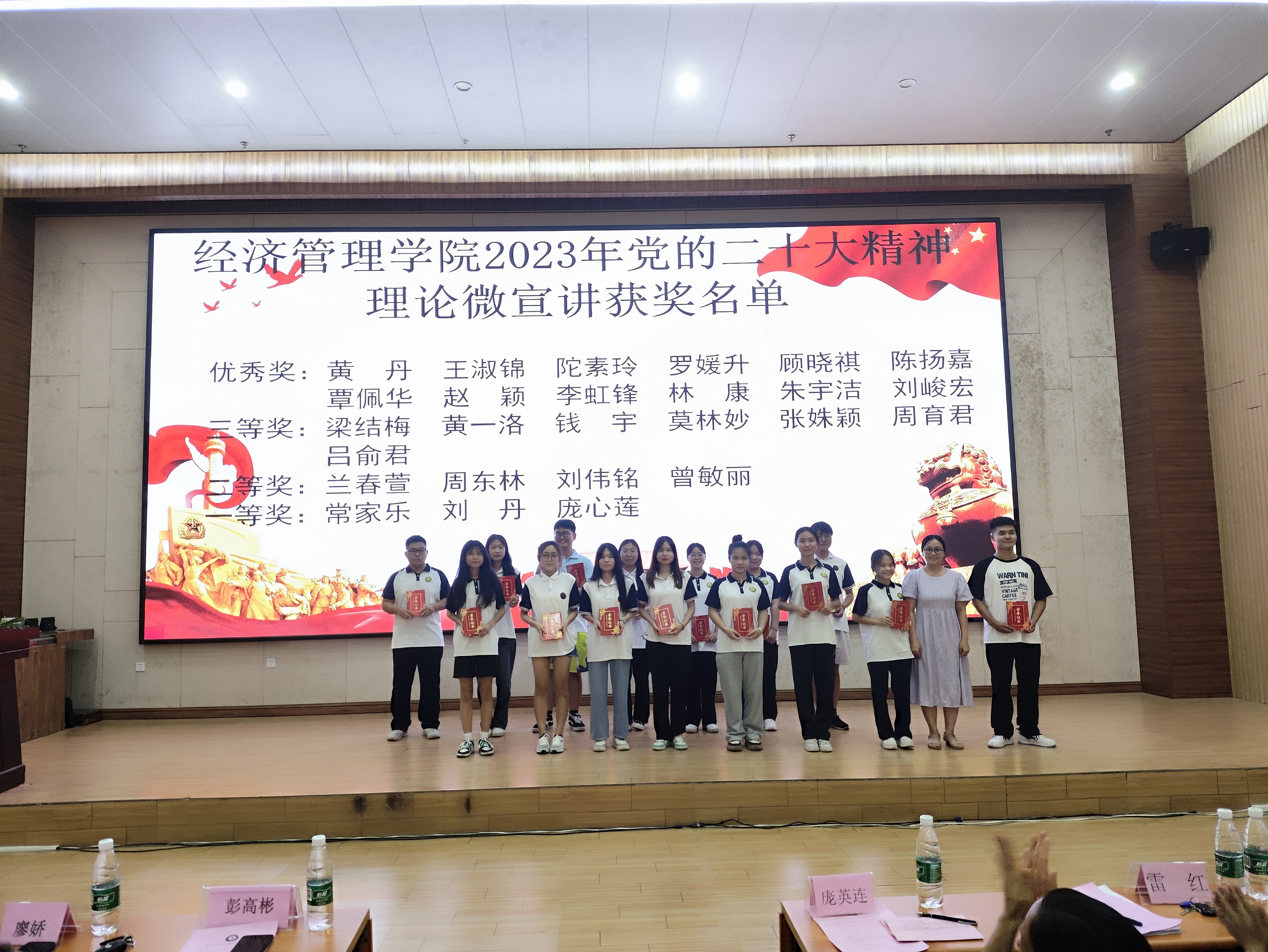“经济管理学院2023年党的二十大征文”黄凤玲老师为获奖者颁发