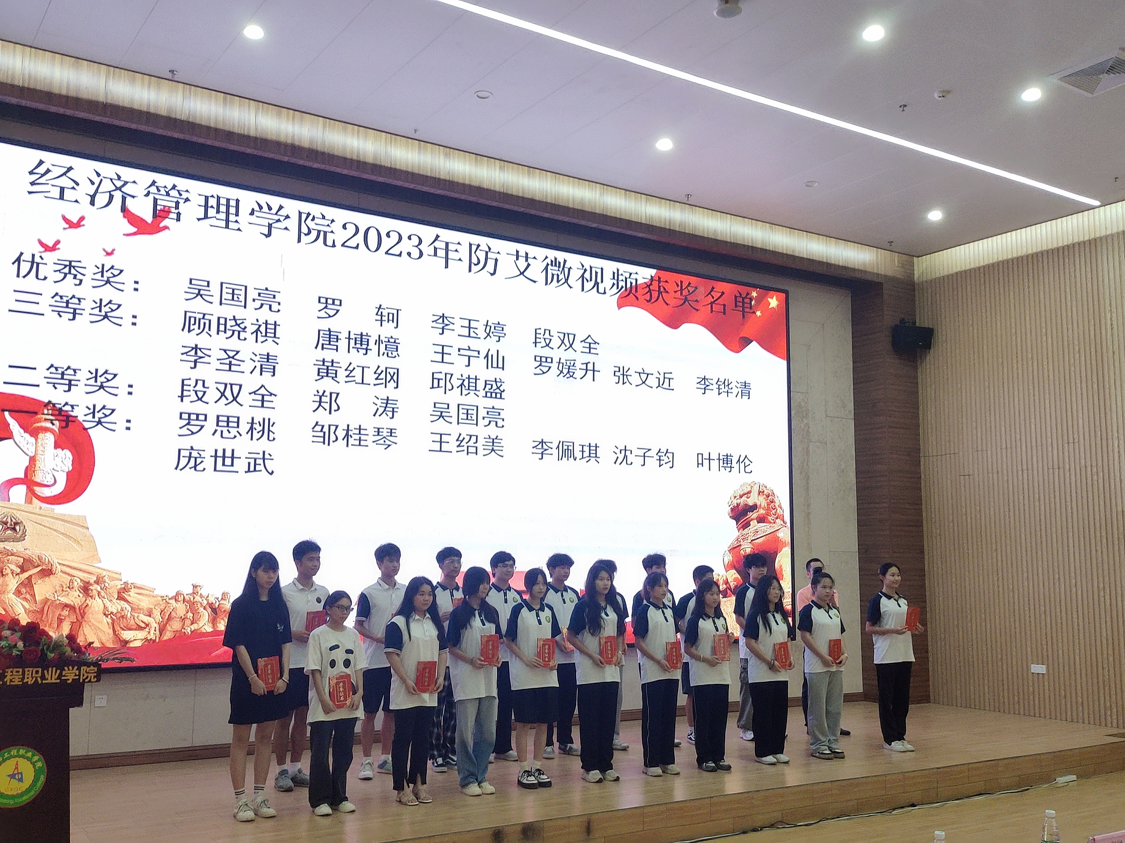 “经济管理学院2023年防艾微视频”刘忠略老师为获奖者颁发