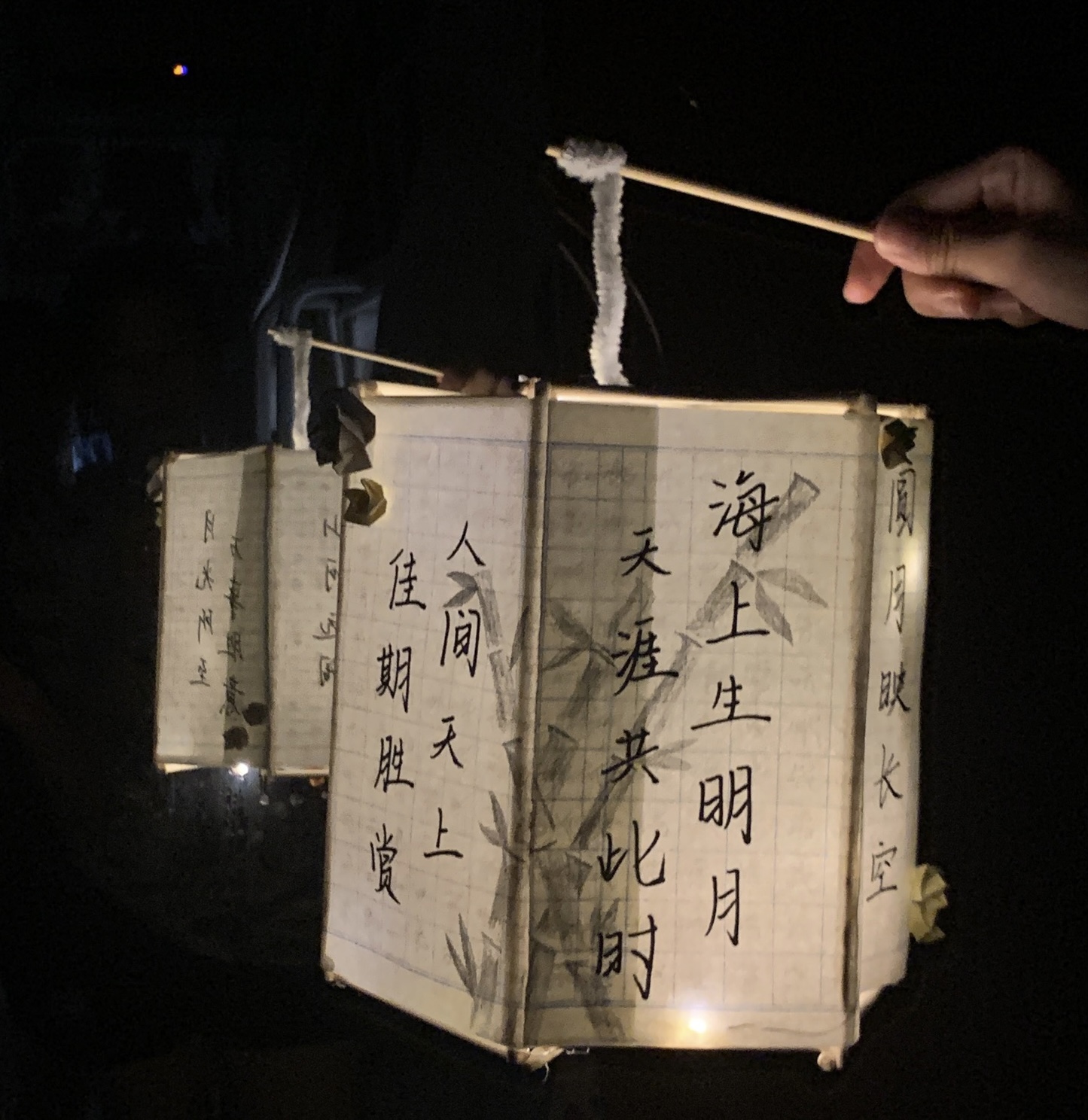 各班学生精心准备了最环保的工具DIY创作中秋灯笼和各种手工艺品,比如用上的筷子和废纸来创作。灯笼,又称灯彩,是一种古老的传统工艺品。起源于西汉时期,每年的农历正月十五元宵节前后,人们都挂起象征团圆意义的红灯笼来营造一种喜庆的氛围,今时今日,我们早已无从得知是谁独上高楼,为月亮赋予了离家与归乡、团圆与大同的文化意涵与阴晴圆缺、悲欣交集的人生哲理,但可以确定的是,无论中秋赏月的习俗如何流变,月色亘古不变,所有中国人对月亮独一份的瑰丽而恢宏的想象,都一如既往关乎人与时间、关乎自然与生命的韵律。