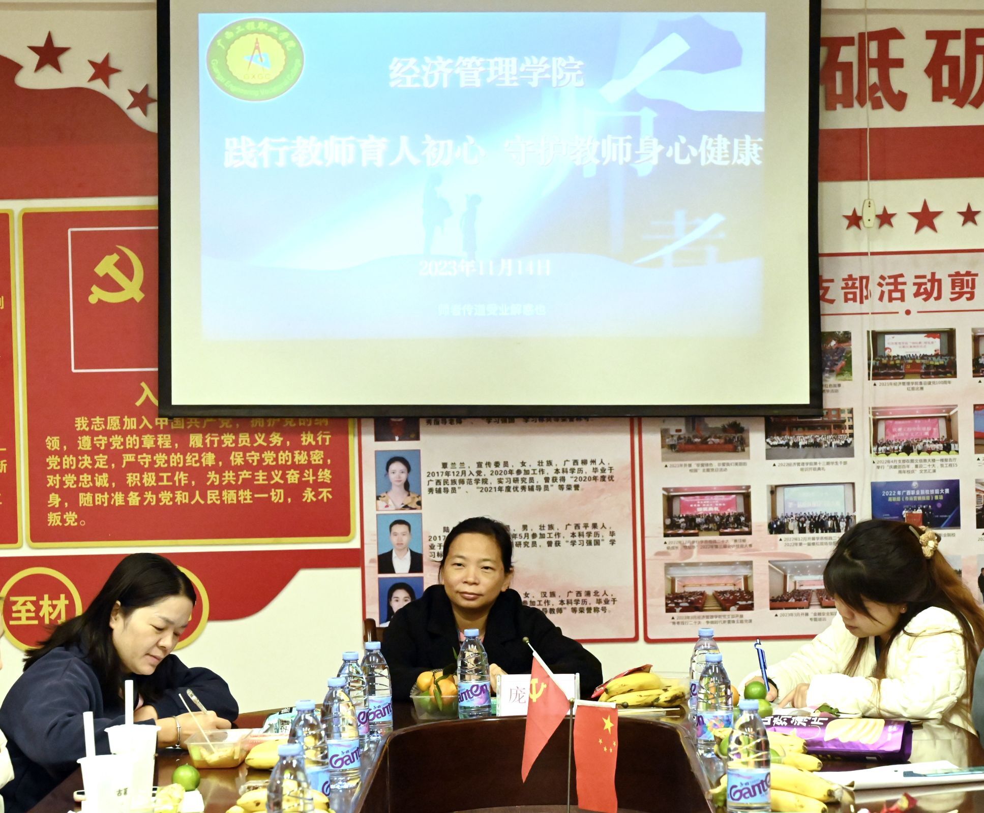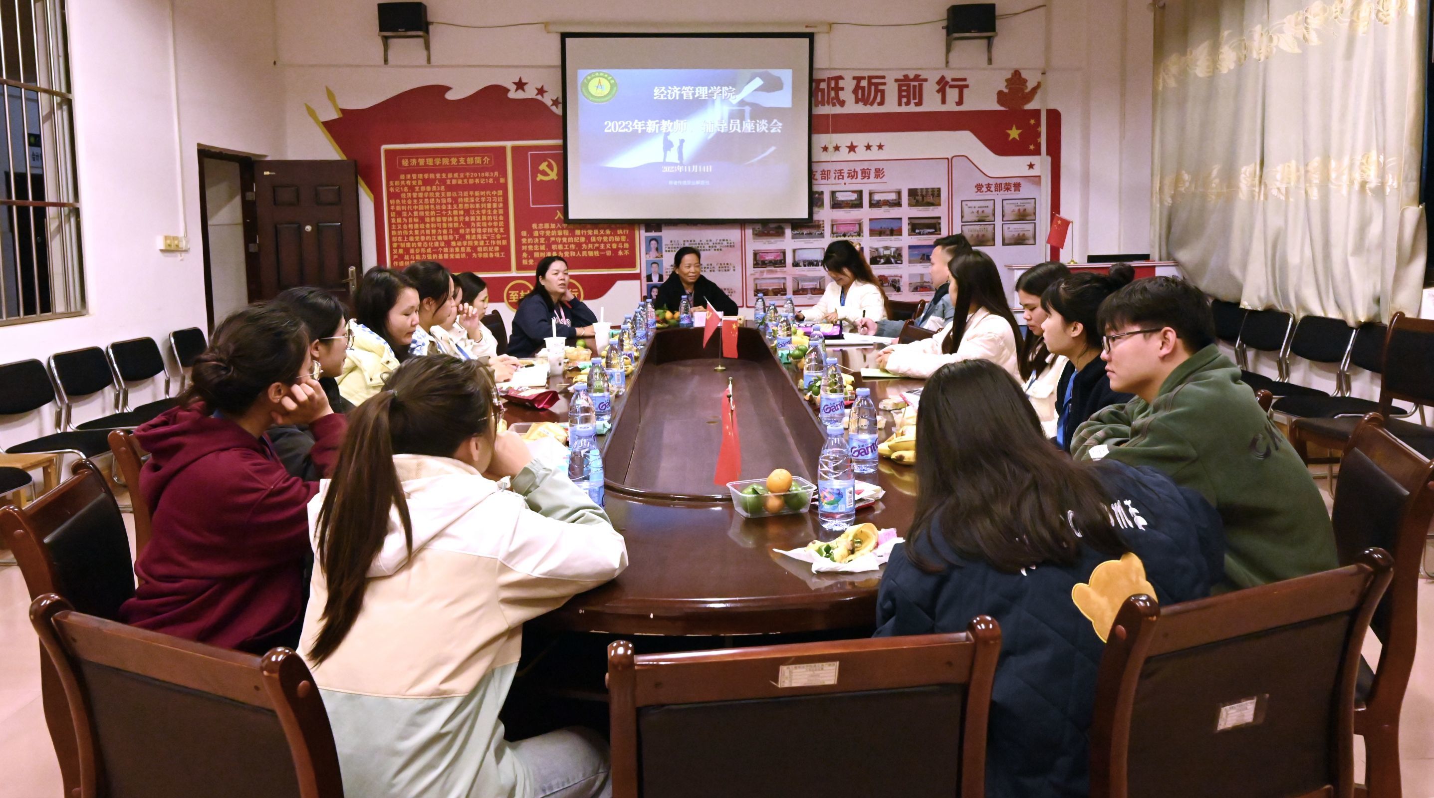 2023年11月14日,经济管理学院在302会议室举行了新教师、辅导员心理健康座谈会。此次座谈会以“践行教师育人初心 守护教师身心健康”为主题,座谈会旨在促进经济管理学院党支部与新教师、辅导员间的交流互动,听取新教师、辅导员们在工作、生活上遇到的问题和困难,关心教师的身心发展,提升教师的职业感、集体荣誉感,增强学院凝聚力,鼓励教师以更加振奋的精神和昂扬的姿态投入学院和学校的建设中,座谈会由经济管理学院党支部书记、院长庞英连主持。经济管理学院党支部副书记潘翠萍、办公室主任雷红、学生科长李东英及学院新任教师、辅导员参加了座谈。