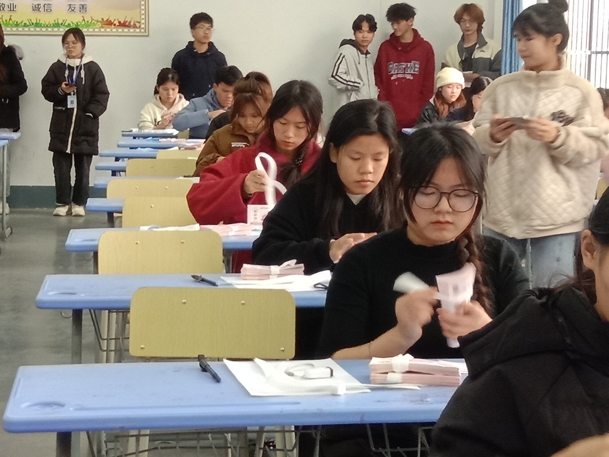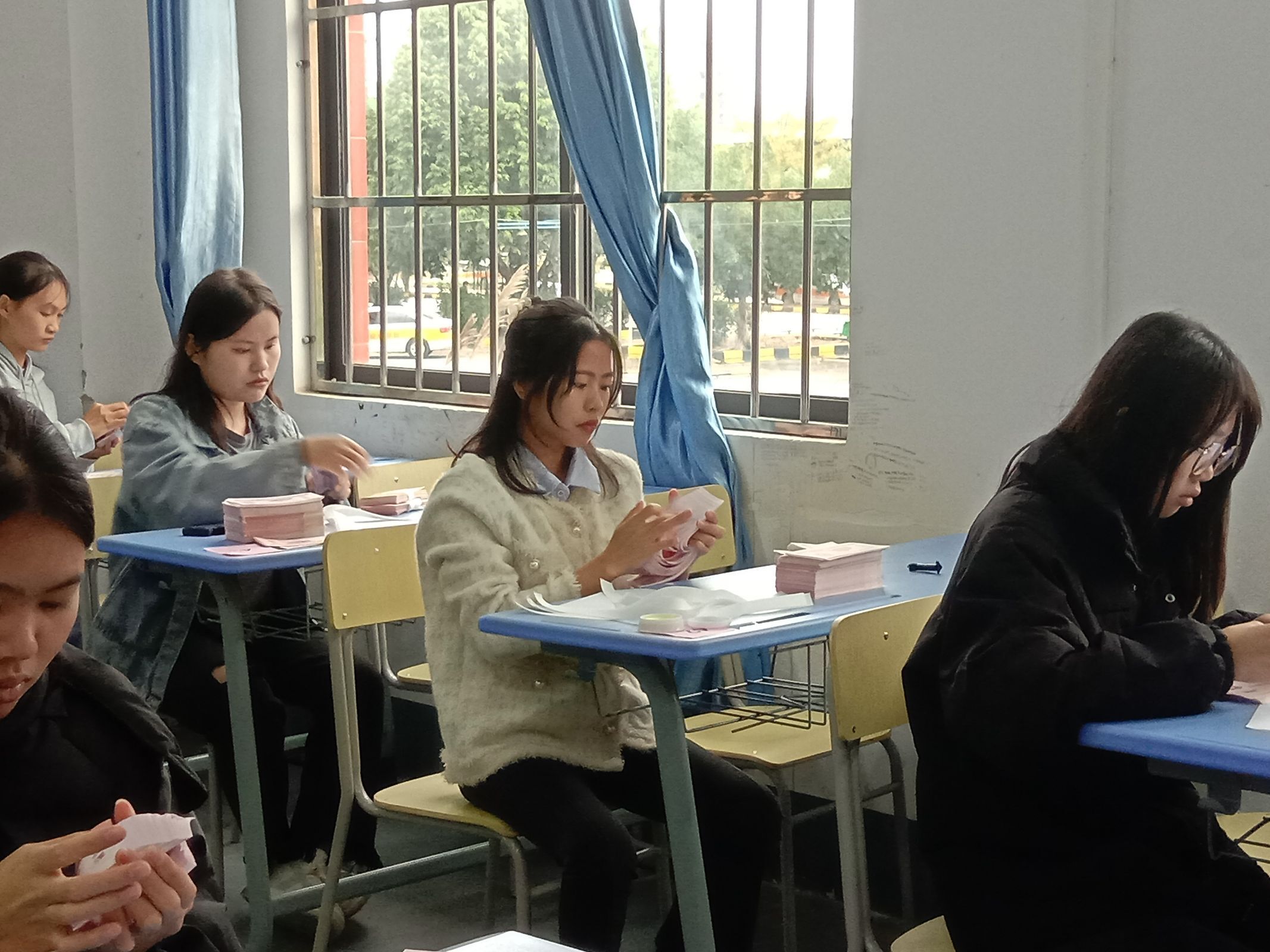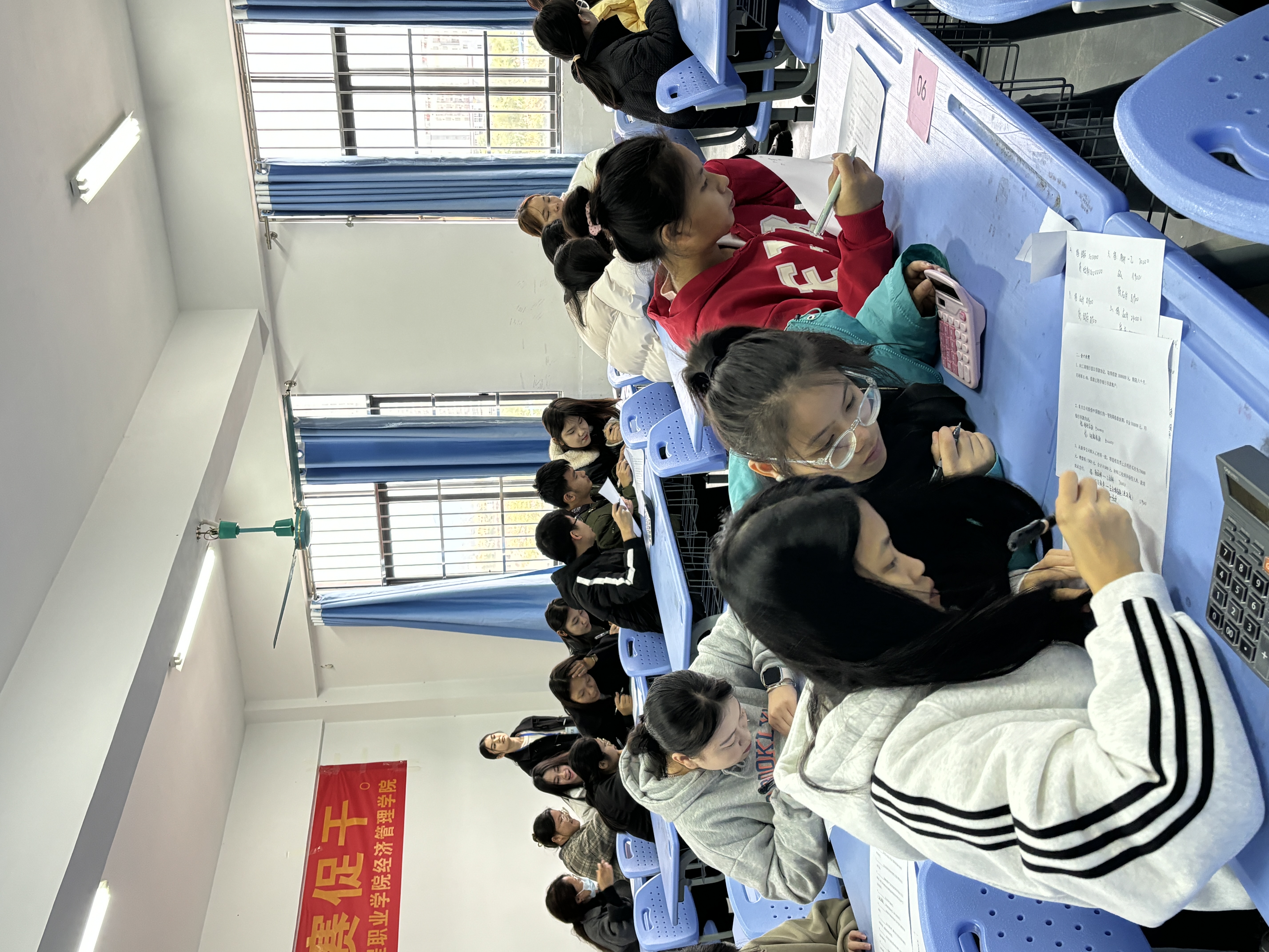 为了让学生更好的了解大数据与财务管理、大数据与会计专业的技能特性,增强学生对专业课学习的热情和动力,更好的营造出一个积极向上的校园学习环境和气氛,让学生更好的适应当今社会快速发展的节奏,增强自身专业性。2023年12月16日,经济管理学院举行“技能无限,青春有为”第四届会计技能大赛。本次比赛分为三个项目:翻打传票比赛、点钞比赛、科目知识竞赛。决赛在第2教学楼举行。