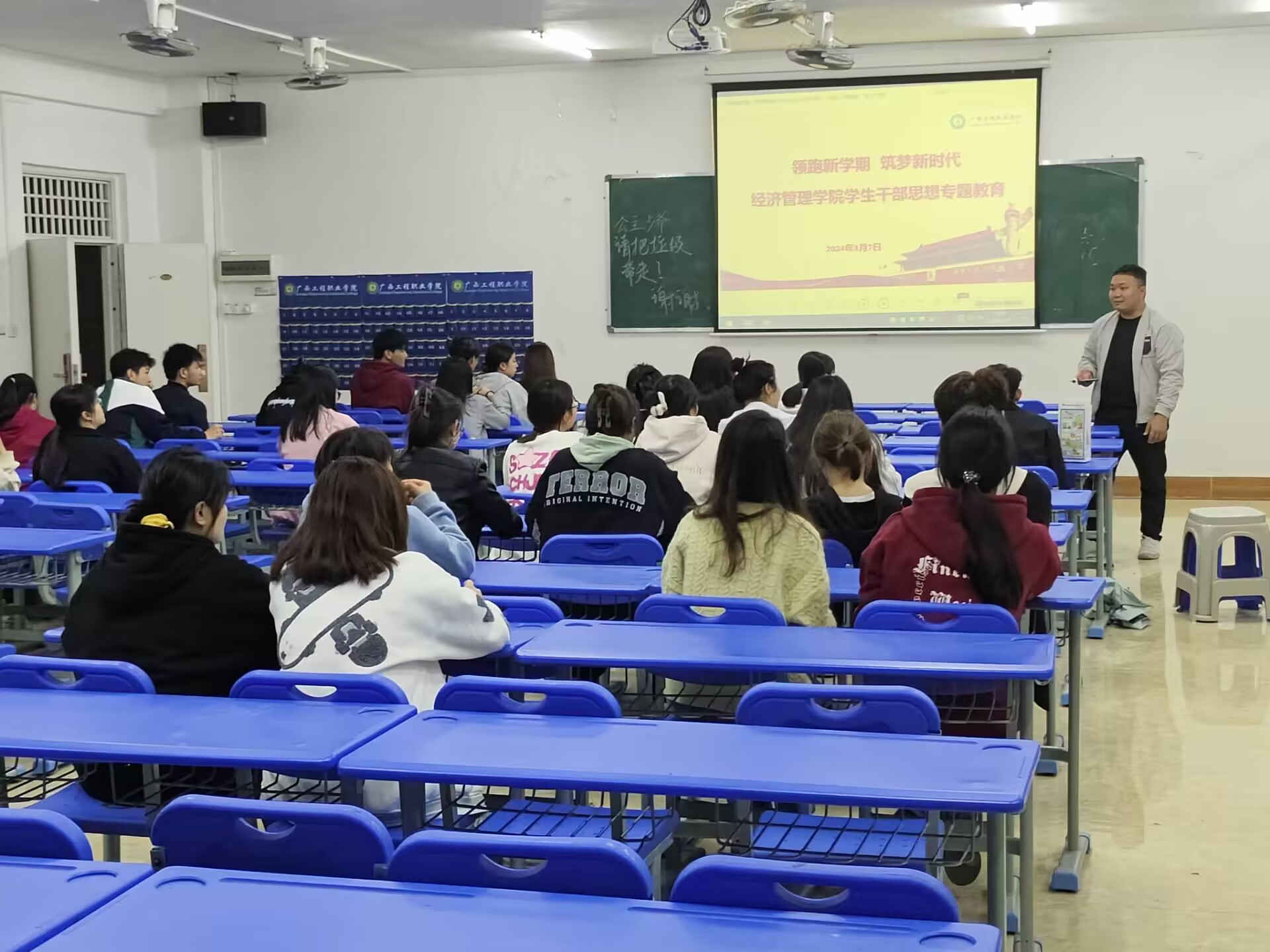 为进一步落实开学时期各项学生工作,加强学生干部队伍建设,在新学期营造良好校风、班风、学风,我院3月7日开展新学期学生干部培训会,此次会议我院全体学生干部参加培训。