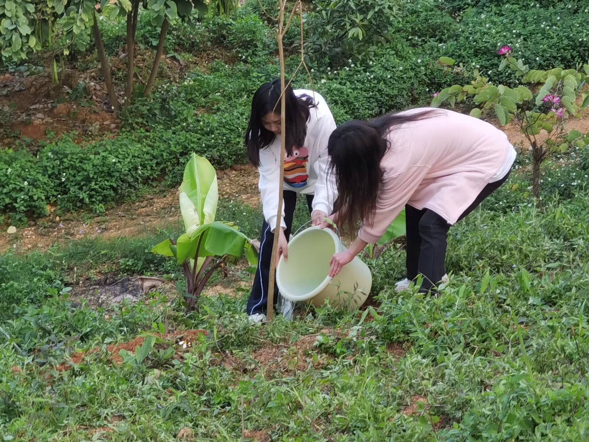 植树现场热火朝天,师生们纷纷撸起袖子,除草、挥锹铲土、扶苗固正、培土压实、浇水灌溉,每一道工序都一丝不苟、衔接有序。师生交流栽种新树、加强绿色生态发展的看法。植树活动中,大家分工明确,配合默契,干得热火朝天。挥铲之间,一棵棵新植向阳而生。一锹土,一桶水,浇灌的是生机和希望,承载的是大家的绿色环保梦想。