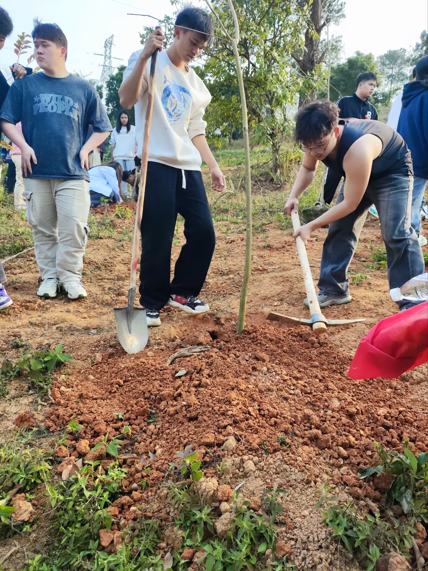 为践行习近平总书记提出的“绿水青山就是金山银山”的生态文明思想,引导广大青年学生参与到植树造林的行动中来,树立“植绿、爱绿、护绿”的生态文明新风尚。全国第46个植树节到来,3月12日下午,学院教师,辅导员。2022级2023级学生代表一起参加学院"凝心聚绿,共植绿美工程”植树活动中,为学院增添片片新绿。