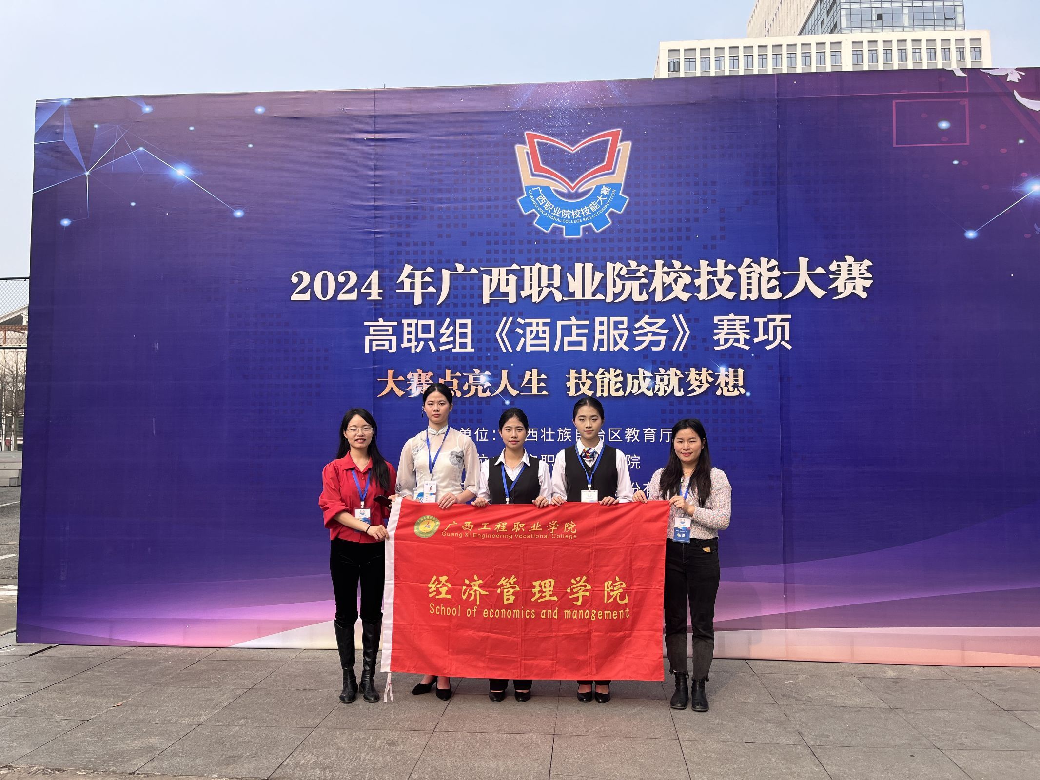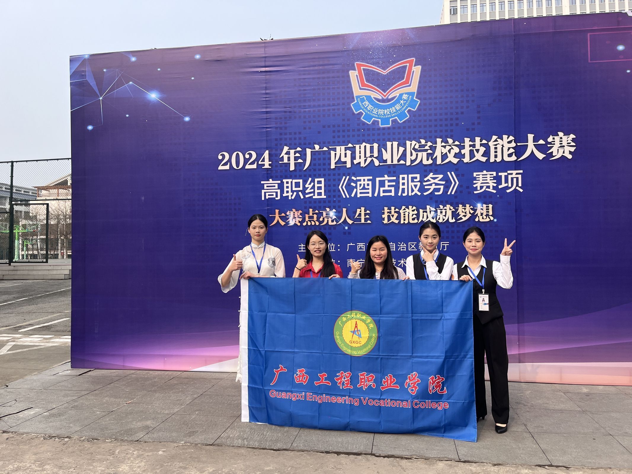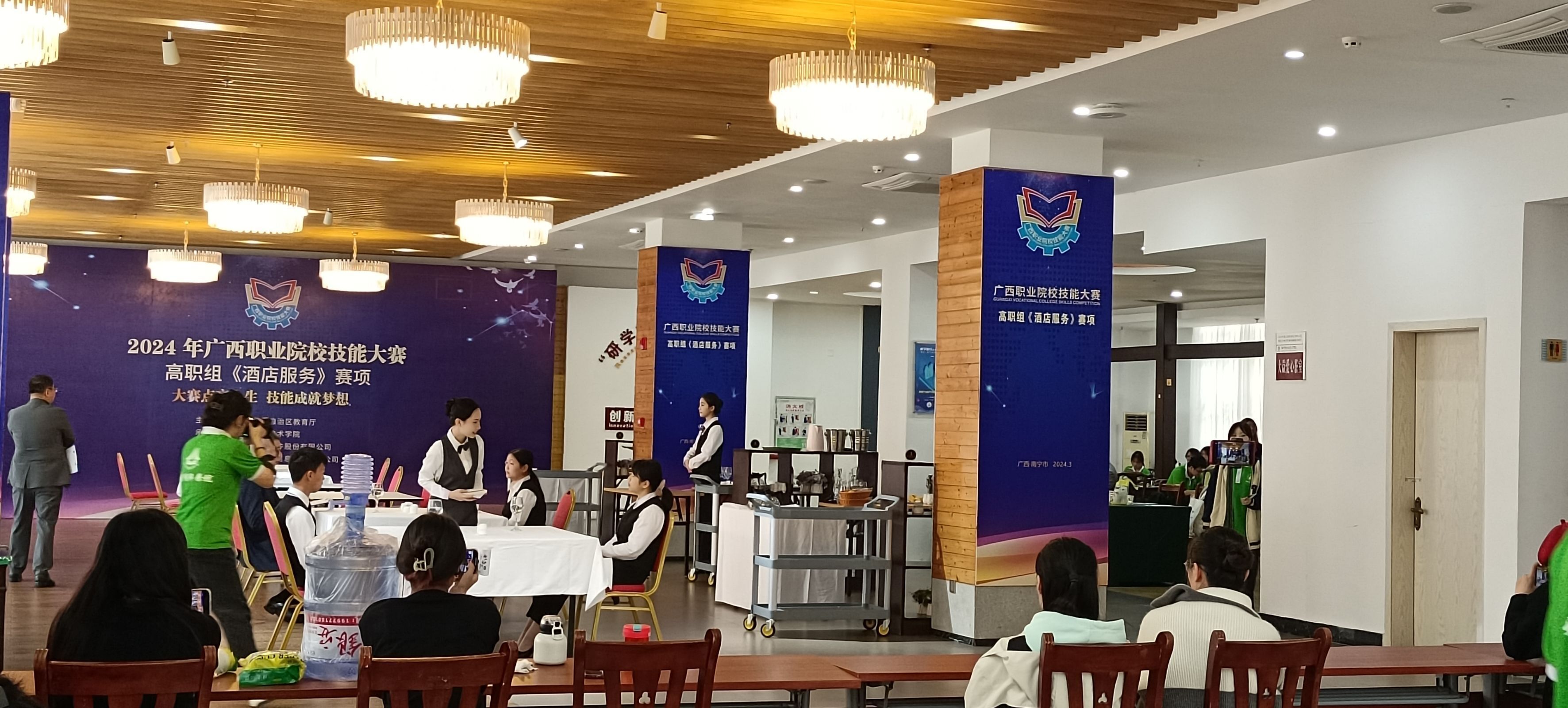 2024年3月15日-17日广西职业院校(高职组)酒店服务技能比赛在南宁职业技术学院举办,各校代表队共29个,彭丽文和谢锡洁老师带领曾义莹,李冬梅,秦苑钫3名同学参加了此次比赛。比赛分为三个模块,分别是第一模块是前厅服务、第二模块是中餐服务、第三模块西餐服务。