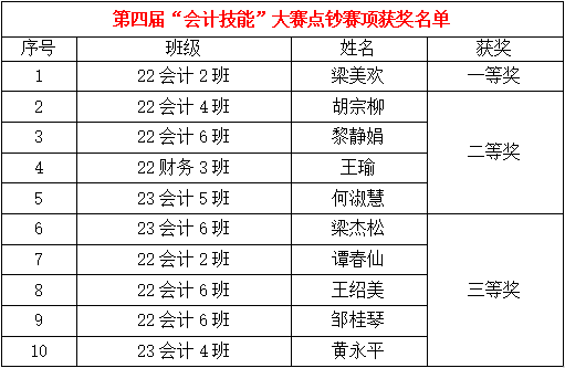 图:点钞赛项获奖名单获奖名单