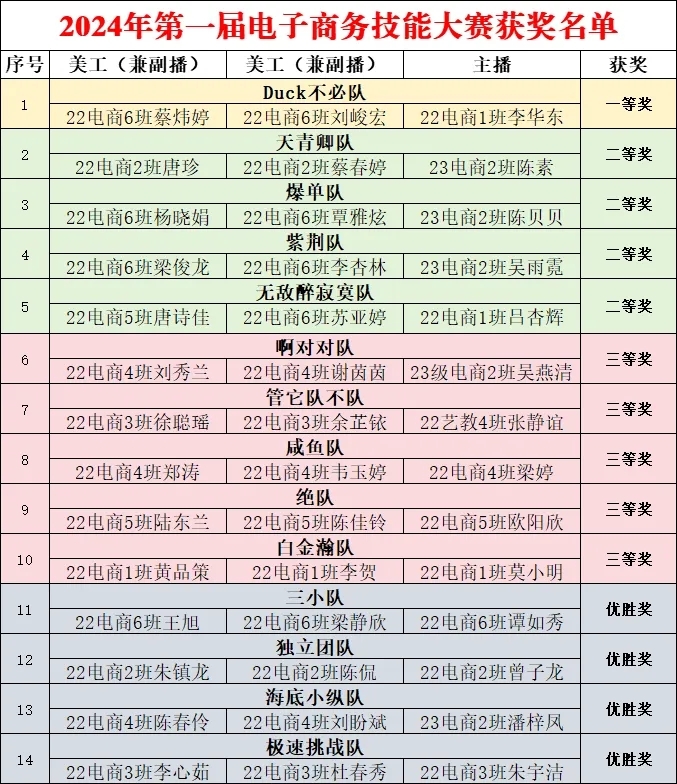 经过激烈的比拼,各位参赛选手以提高电子商务专业技能为目的,赛出水平、赛出风采,取得了优异的成绩。办公室主任雷红宣布第一届电子商务技能比赛获奖名单。