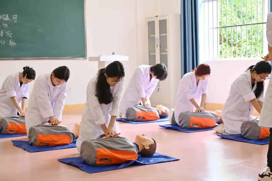 黄华老师通过实训课讲授心肺复苏的基本理论和心肺复苏的实操程序,让学生能快速识别心搏骤停、掌握实施心肺复苏的技能。讲课中,黄老师还强调了“时间就是生命”的急救理念,要求同学们要培养良好的职业道德,爱护、尊重患者,要有不怕脏、不怕累的吃苦精神和团队合作精神。