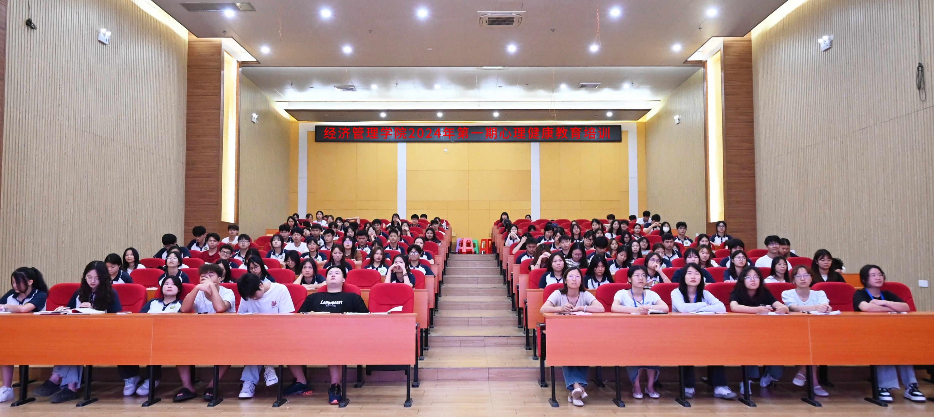 为深入学习贯彻习近平新时代中国特色社会主义思想和党的二十大精神,全面落实教育部等十七个部门关于《全面加强和改进新时代学生心理健康工作专项行动计划(2023—2025年)》的通知、教育部办公厅《关于加强学生心理健康管理工作的通知》和中共教育部党组织关于《高等学校学生心理健康教育指导纲要》的通知要求,切实加强和改进新时代高校心理健康教育工作,不断提升高校师生心理健康素养,为了提升经济管理学院心理健康教育水平,加强学生心理健康工作体系建设,促进大学生思想道德素质和心理健康成长,经济管理学院于2024年5月26日在学校图文信息大楼三楼学术报告厅,开展经济管理学院 2024年第一期心理健康教育培训。