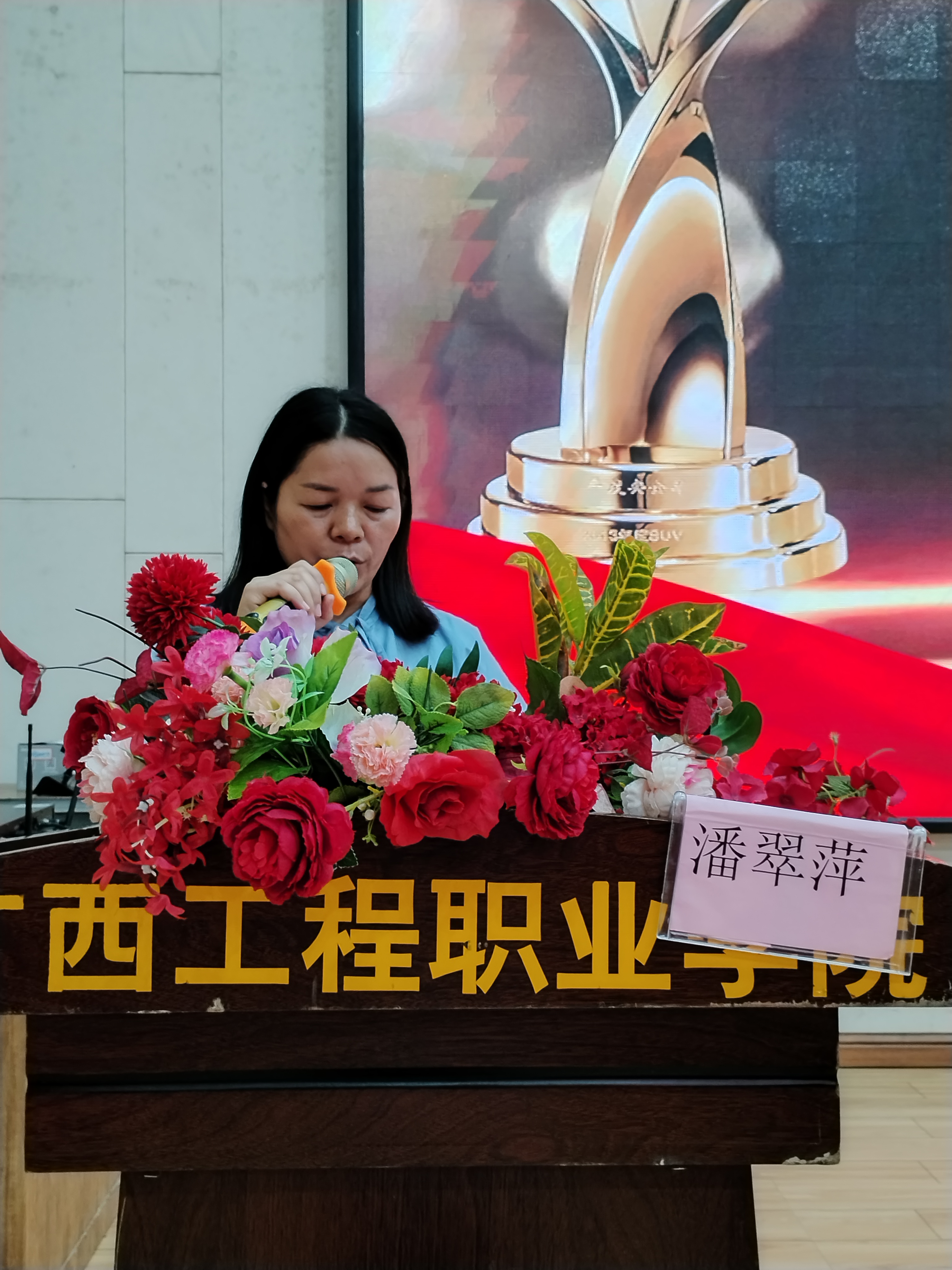 学院党支部书记、院长覃清香为获得一等奖的团队颁发荣誉证书和奖金