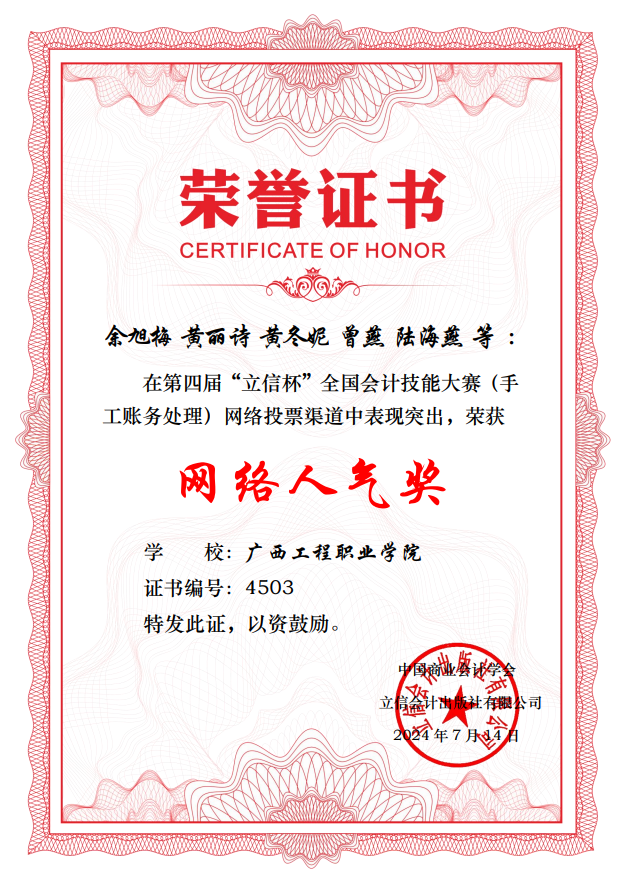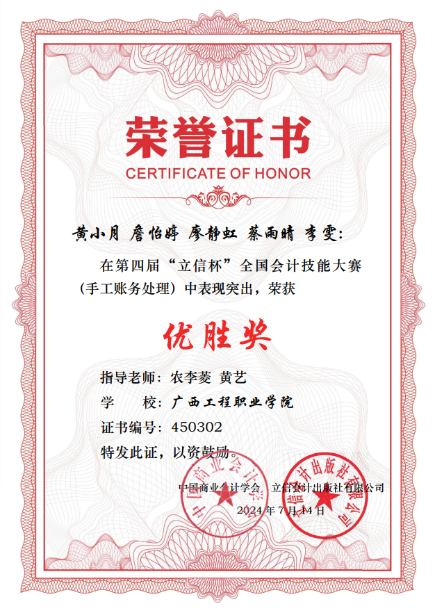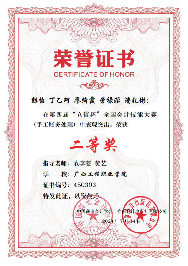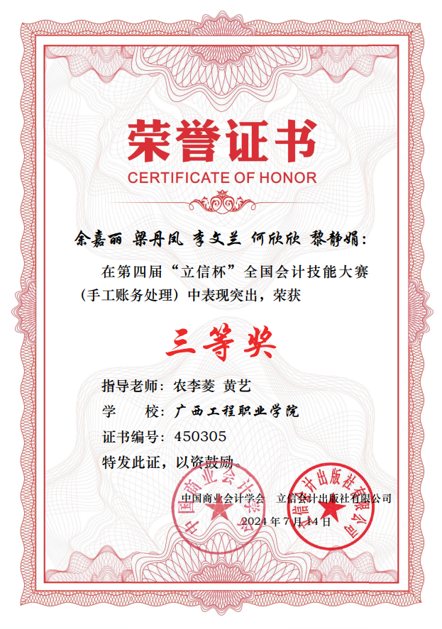 2024年7月18日,第四届“立信杯”全国会计技能大赛(手工账务处理)圆满落幕,上百所院校参加此次竞赛。为提高学生的专业技能水平和实战经验,经济管理学院选派2022级大数据与会计、大数据与财务管理专业的彭怡、丁乙珂、余嘉丽、余旭梅等25位学生,组成5个参赛小组参加此次大赛赛。经过激烈角逐,学生参赛作品脱颖而出,取得良好成绩,其中荣获二等奖1项,三等奖2项,优胜奖2项。同时经过激烈的网络投票,有1组视频作品被评选为“网络人气奖”。