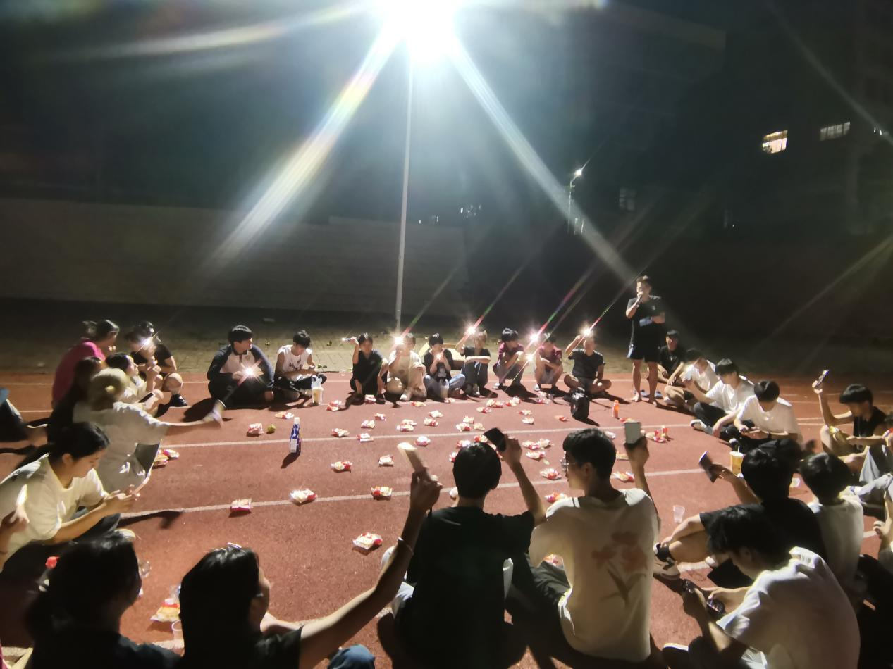 晚上,校园跑道上欢声笑语不断,学校精心准备的月饼和水果,每一块月饼都承载着老师对学生们的殷切期望和满满祝福。同学们围坐一起,共赏圆月,品尝着这份来自老师的特别礼物,脸上洋溢着幸福与感激的笑容。水果的甜蜜与节日的喜庆交织在一起,让整个校园充满了家的温暖。