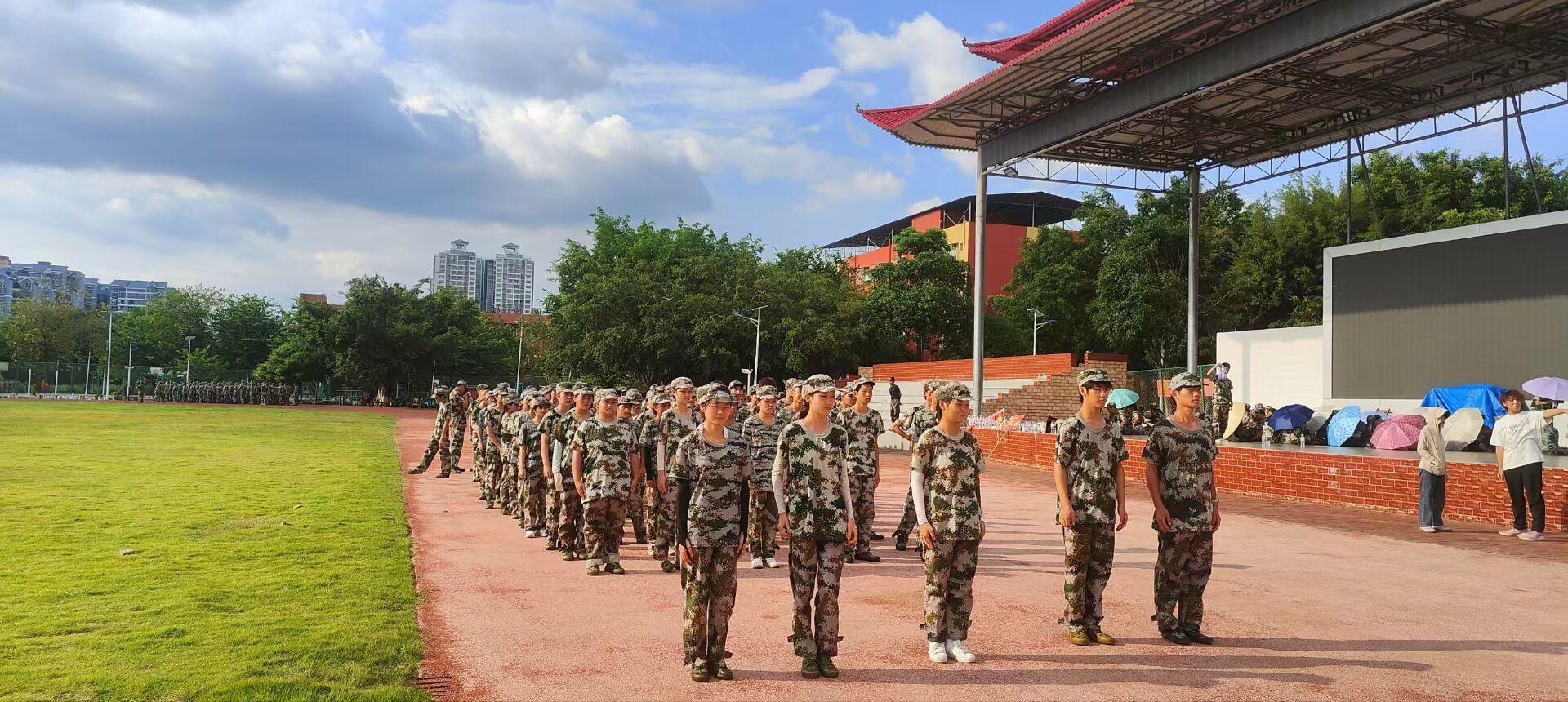 习军人之风铸军人之魂,一次次整齐划一的摆臂,一声声嘹亮的口号。彰显着青年的坚定与担当,那昂首挺胸的身影,如葱郁挺拔的白杨,也映射出同学们,军训中最美的模样。