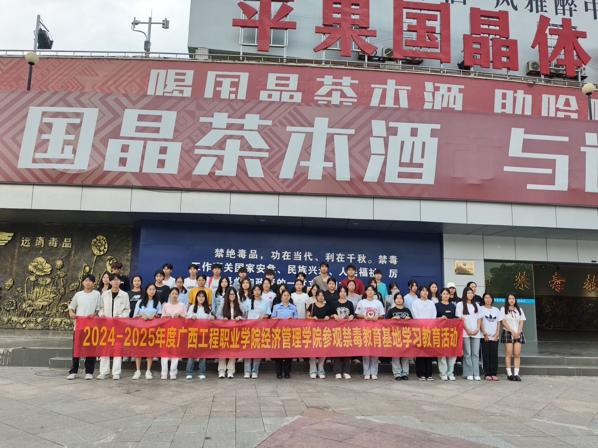 为深入贯彻落实习近平总书记关于禁毒工作的重要指示精神,进一步加强禁毒教育工作,强化学生识毒、防毒、拒毒的意识和能力,培养学生形成“珍爱生命、远离毒品”“健康人生、绿色无毒”的理念。2024年10月14日-15日,在学校学生工作处指导下,经济管理学院2023级、2024级学生代表统一前往平果市禁毒教育基地进行教育活动。活动由各班级辅导员组织带队。