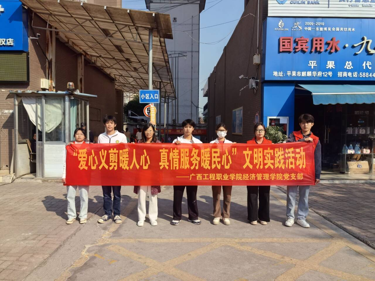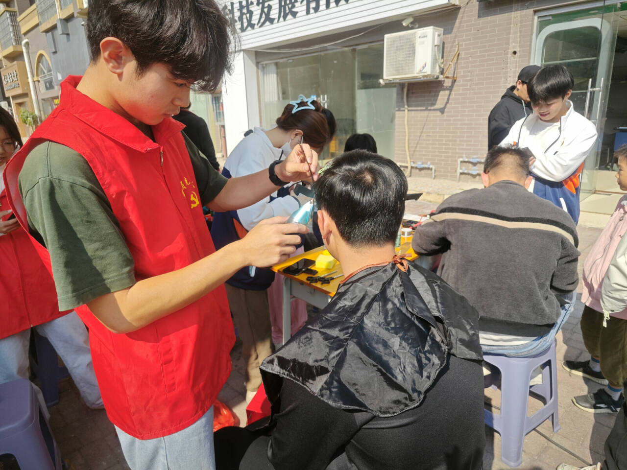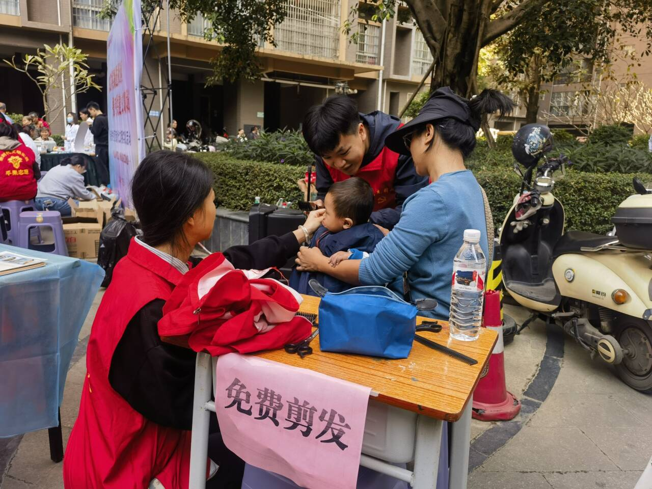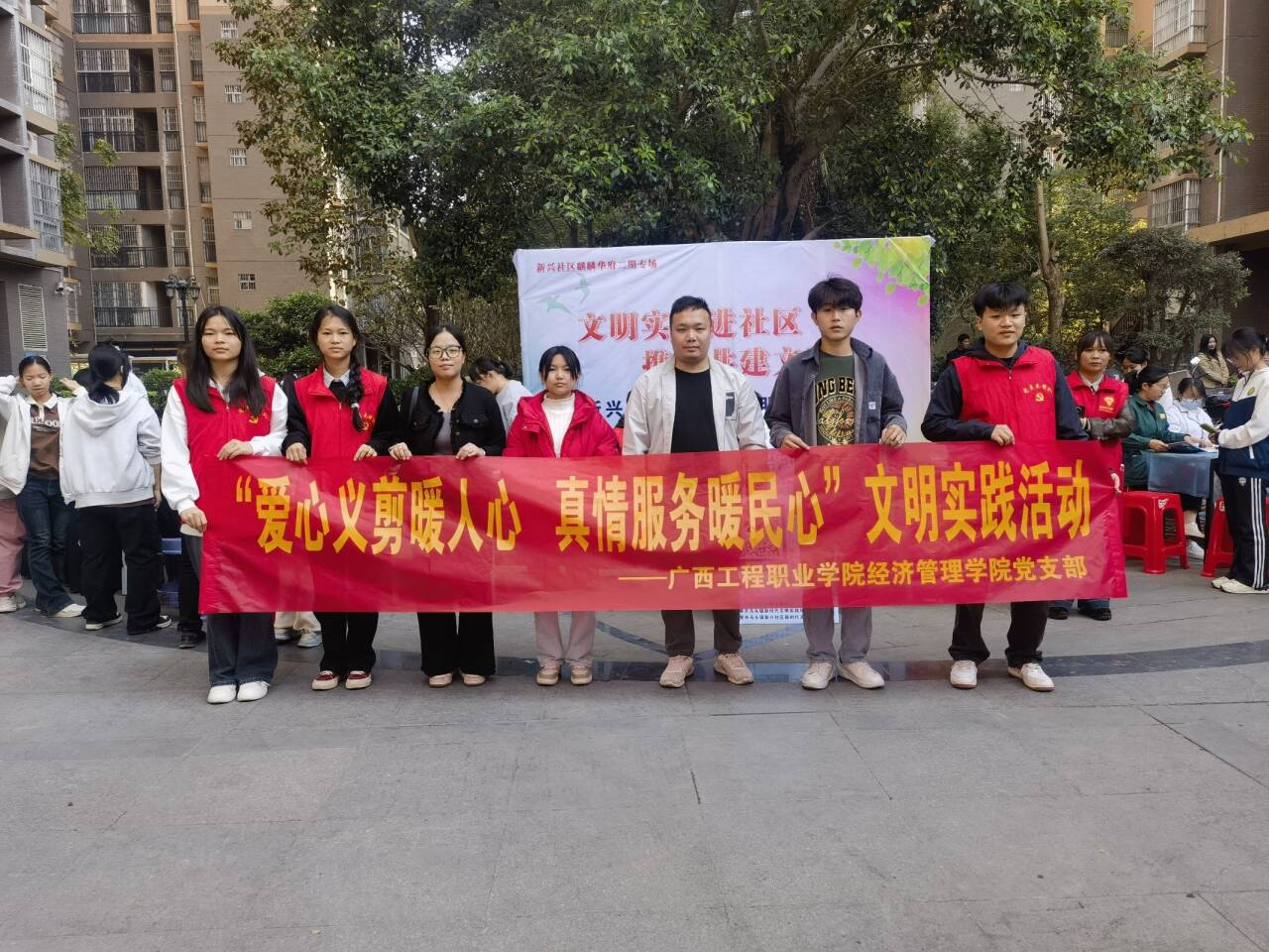 学校作为社区网格中的成员单位,积极参与此次活动,经济管理学院根据安排,组织师生代表前往平果市麒麟华府小区进行爱心理发活动。