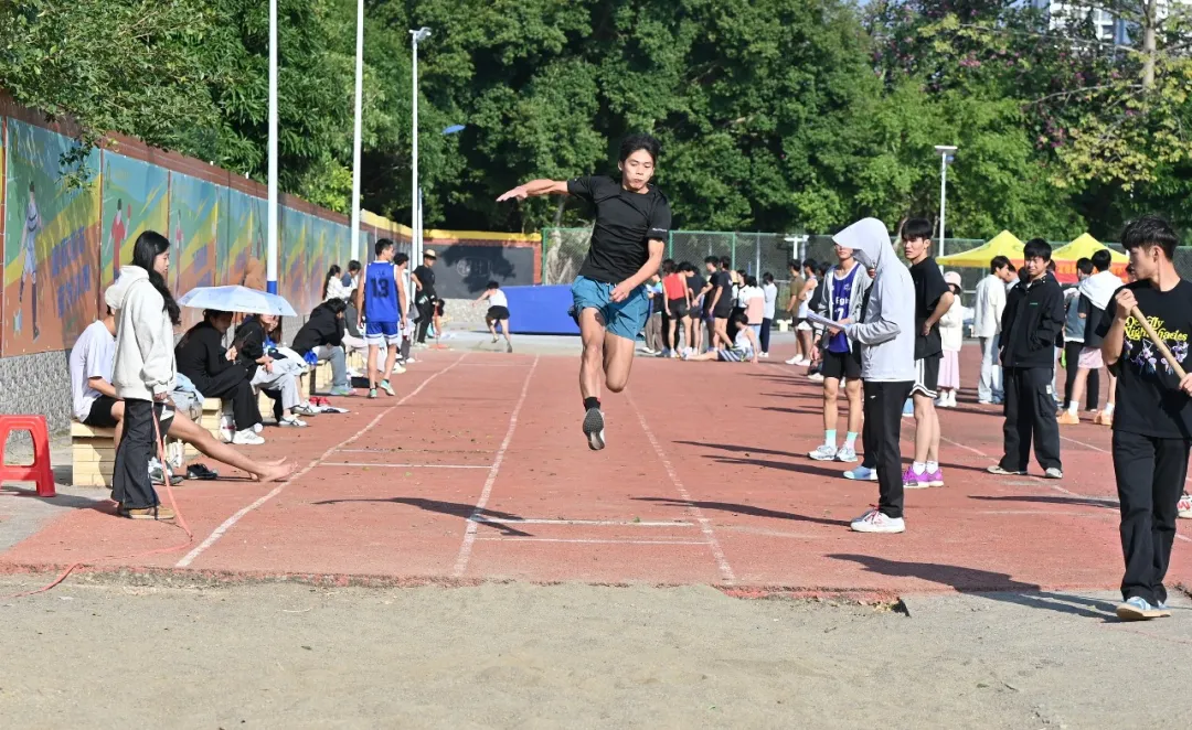 助跑、起跳、腾空、落地,双臂在空中划过一道优美的弧线耳边呼啸着风声、呐喊声、喝彩声青春就是持续的超越自我!