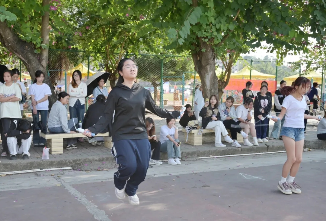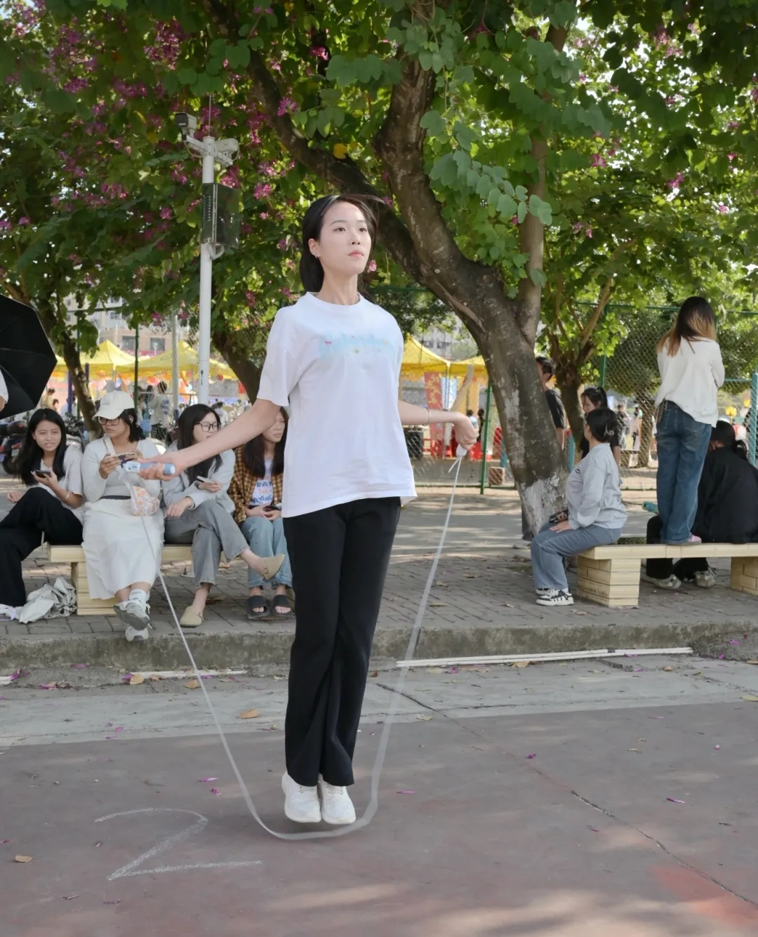 一根纤细的跳绳轻轻摇曳连接的是团结与友爱传递的是快乐与勇气。