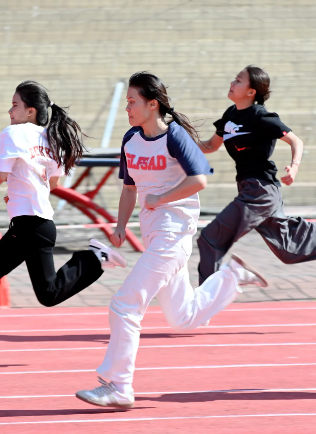 广阔跑道上,心无旁骛,在起跑线前,蓄势待发。起步,预备,跑!似离弦的箭!迈着矫健的步伐冲刺!
