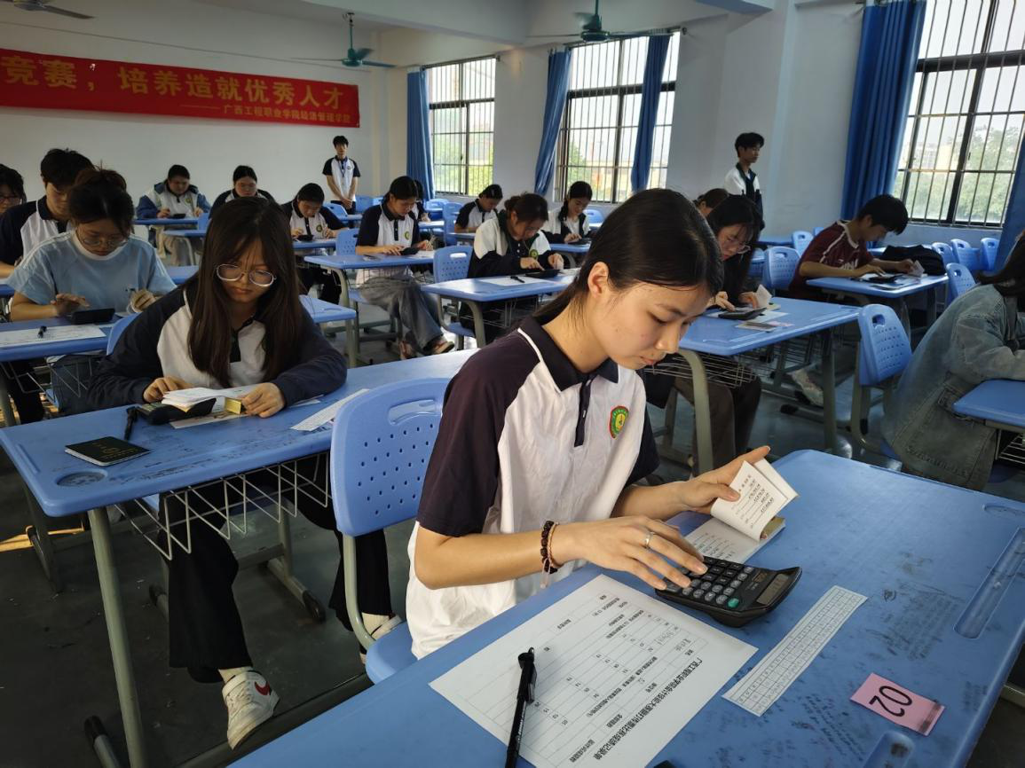数字世界的交响乐章翻打传票赛场俨然成为计算器的键盘协奏曲。选手们左手翻页如风,右手输入似电,手指快捷、轻灵地游走在各个数字和符号之间,没有片刻中断。比赛现场呈现出职业竞技中专业而紧张的氛围。敏捷的反应与熟练的指法,展现出财会学子对职业技能日益驾轻就熟、严谨认真的职业态度。