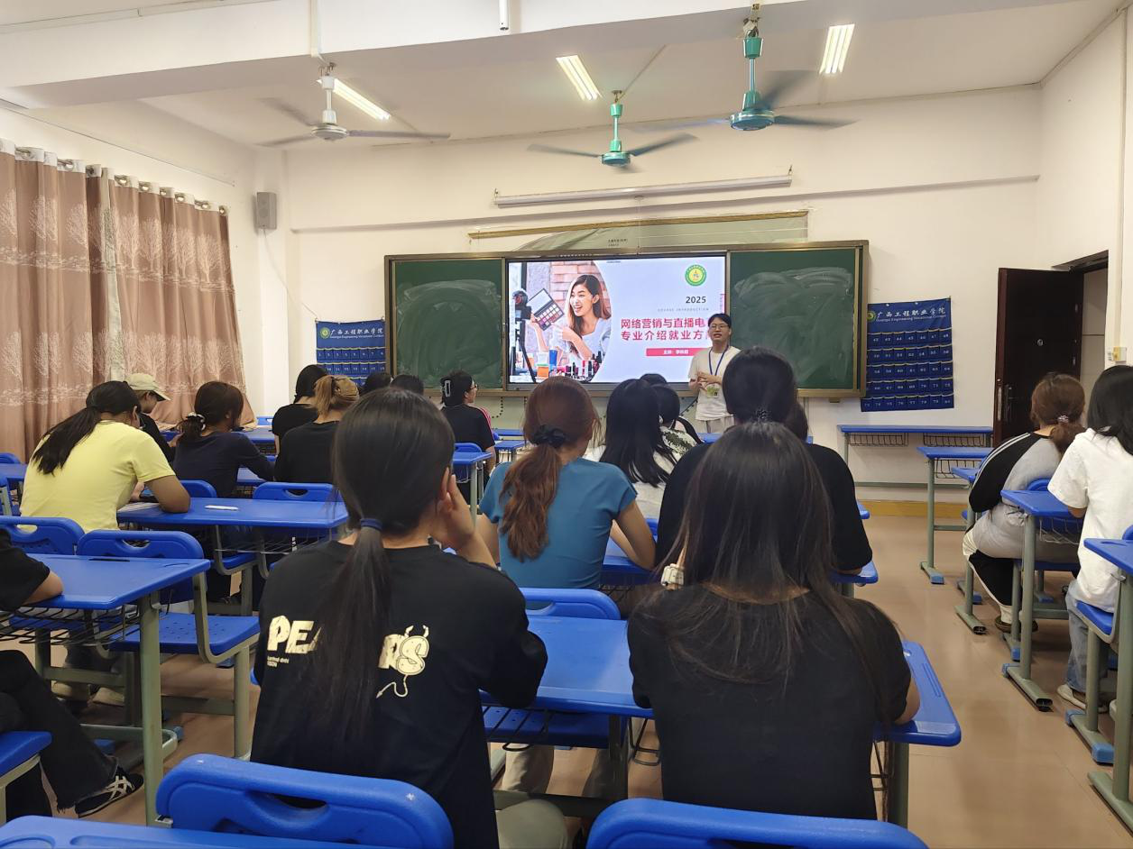 图为学院教师李林蔚对2025级网络营销与直播电商专业学生进行专业介绍