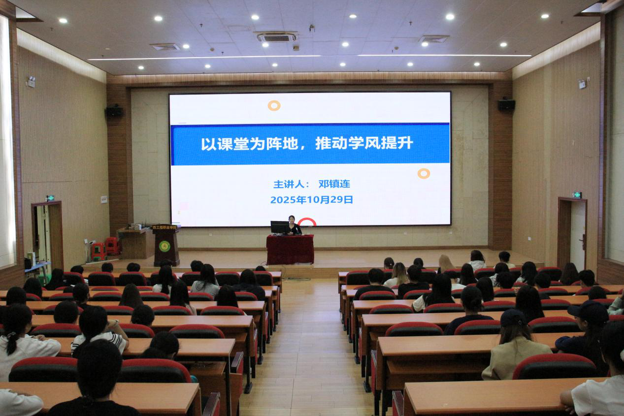 10月29日,学院办公室主任邓镇连围绕“以课堂为阵地,推动学风提升”为主题开展教育教学管理专题培训,从课程考核、学籍管理、实践教学等方面对学校教学管理制度进行了细致解读,帮助新生尽快适应大学学习节奏,规范学习行为。邓主任在培训中还重点解读了学分制度与重修政策,强调新生需严格遵守考勤纪律,积极参与课堂互动,培养自主学习习惯;她结合实例分析了学业预警机制,提醒新生及时规划学习进度,避免因拖延影响毕业进程,并通过问答环节解答了学分转换、选课流程等常见疑问,帮助新生建立清晰的学习目标与责任意识。