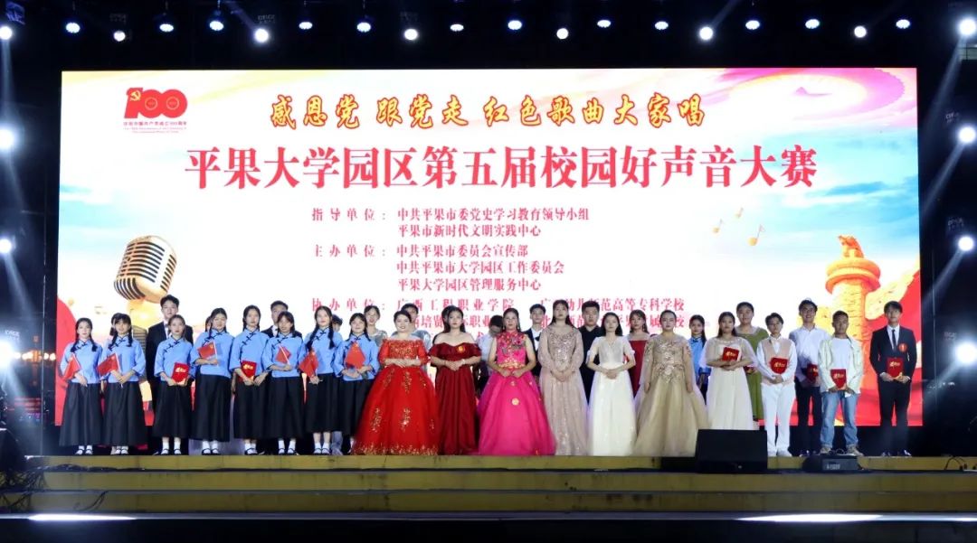 百年征程波澜壮阔,百首红歌颂赞初心。为推动党史学习教育走深走实,以优异成绩献礼党的百年华诞,2021年6月18日,平果市“感党恩跟党走红色歌曲大家唱——平果大学园区第五届校园好声音大赛”决赛在平果市文化公园举行,beat365师生积极参加,并取得银奖2项、铜奖1项、优胜奖1项的好成绩。