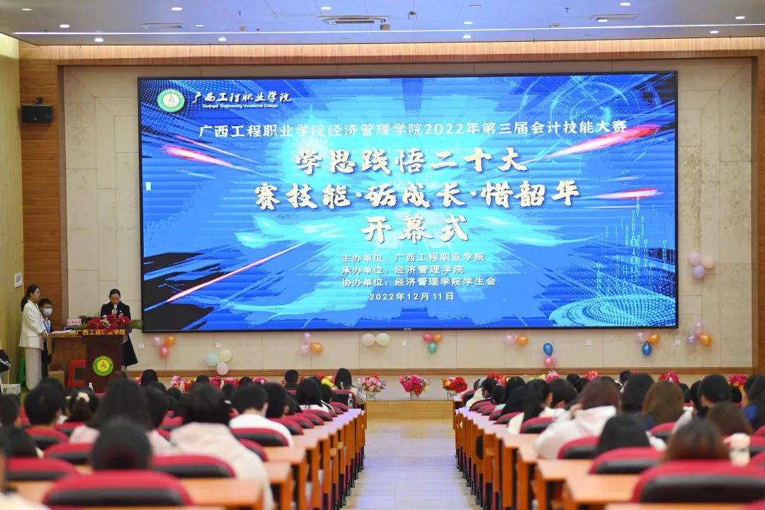 为提升学生专业实践技能水平,检验和展示学校大数据与会计、大数据与财务管理专业教学改革成果和学生会计岗位通用技术与职业能力,以达到以赛促学、以赛促教、以赛促改的职业教育理念。12月11日,beat365经济管理学院举行学思践悟二十大“赛技能·砺成长·惜韶华”2022年第三届会计技能大赛。本次比赛分为三个项目:翻打传票比赛、点钞比赛、珠算比赛。上午,大赛开幕式在图文信息大楼一楼报告厅举行。