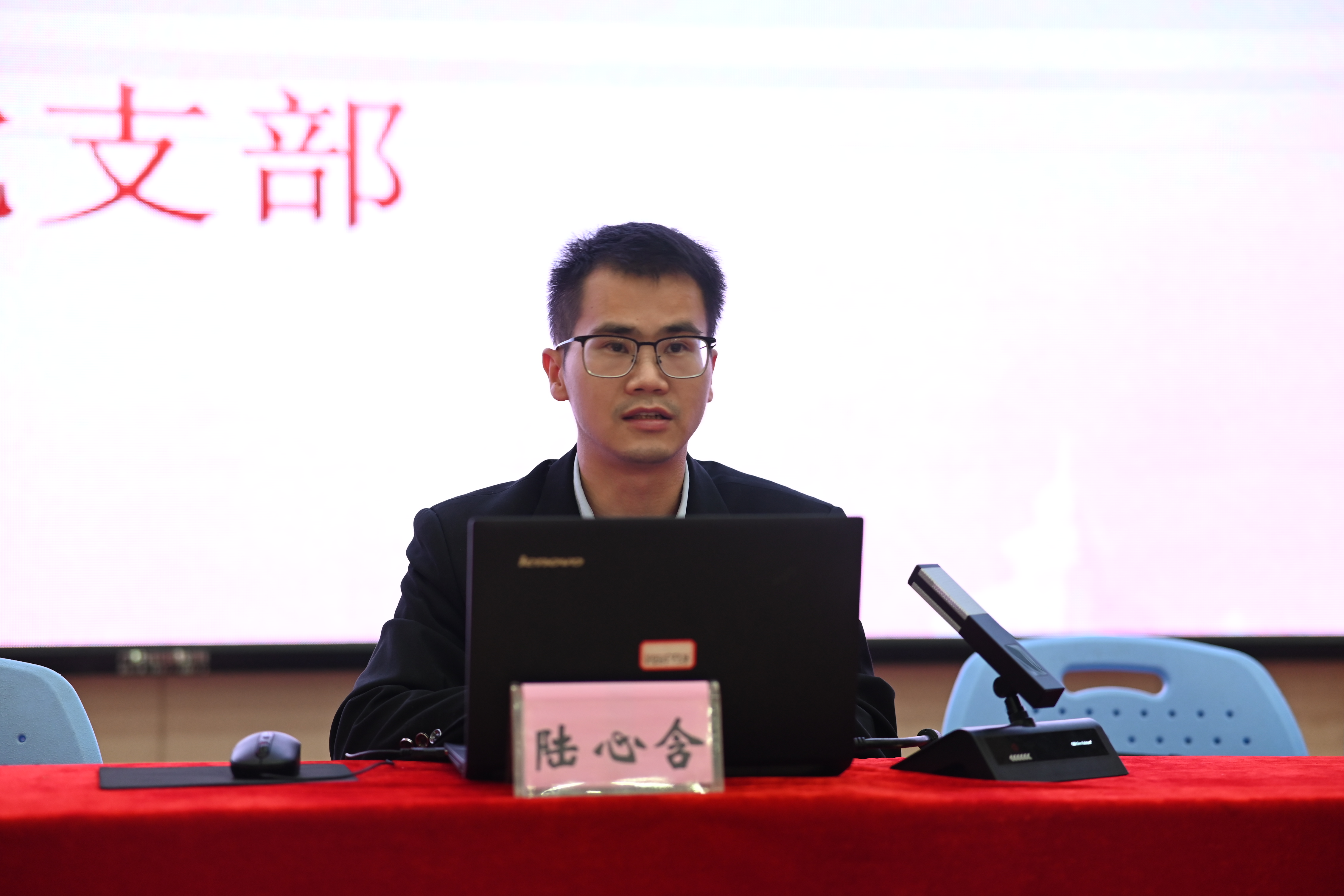 汽车与机电学院党支部书记陆心含主要围绕党的二十大精神,从深刻认识学习宣传贯彻党的二十大精神的重大意义、全面准确学习领会党的二十大精神实质、深刻领会习近平总书记对青年的寄语等方面进行全面解读和系统阐述。并对全体成员提出了希望,希望同志们学深悟透党的二十大精神,深刻领悟“两个确立”决定性意义,增强“四个意识”、坚定“四个自信”、做到”两个维护;坚定不移听党话、跟党走,怀抱梦想又脚踏实地,敢想敢为又善作善成,为实现中华民族伟大复兴中国梦,为学校的建设贡献青春智慧和力量。