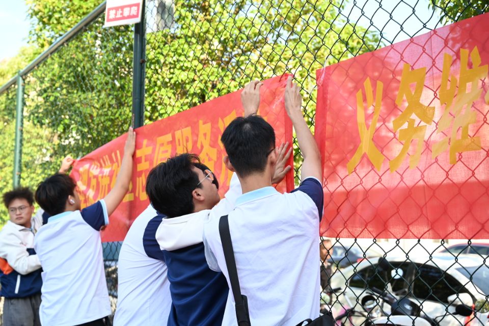 同学们认真布置活动现场