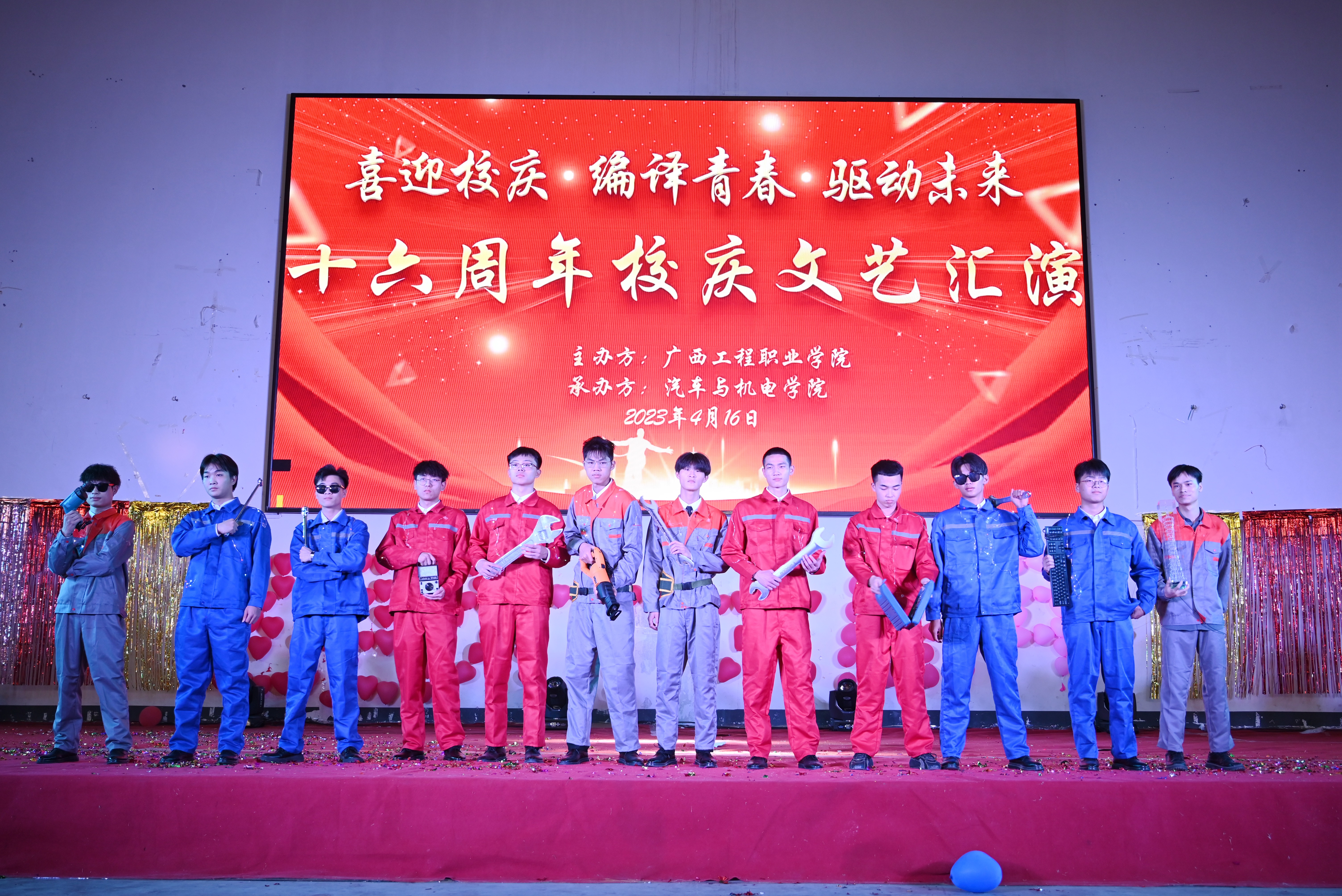 为喜迎校庆,提升师生爱校情怀,丰富师生课余生活,汽车与机电学院2023年4月16日在学校体育馆举办“喜迎校庆 编译青春 驱动未来”十六周年校庆文艺汇演,学校副校长黄德伟、汽车与机电学院副院长梁欣欣、支部副书记邓镇连、分团委书记杨小樱及汽车与机电学院全体教师到场观看。
