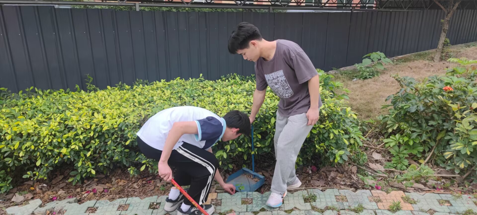 在党支部副书记邓镇连的指导下,清洁活动开展得十分顺利,校园内的草丛和道路也变得更加整洁有序,各小组成员配合默契,认真清扫每一个角落,严谨对待党支部交代的任务,不偷懒、不抱怨,以饱满热情参与到活动中,他们互帮互助、互相监督,展现了入党积极分子在正确思想引导下认真负责的良好精神风貌。