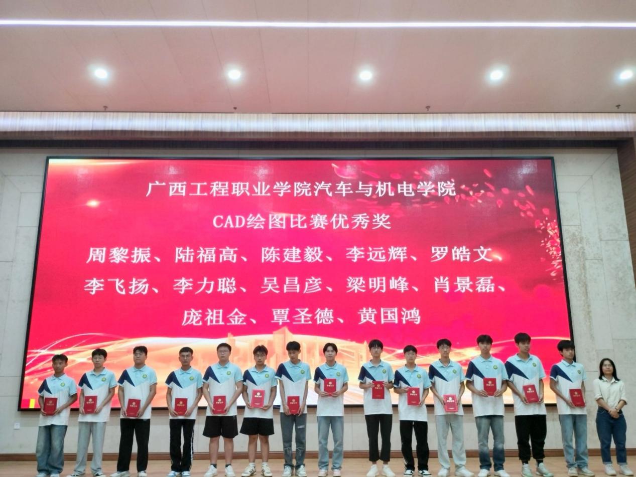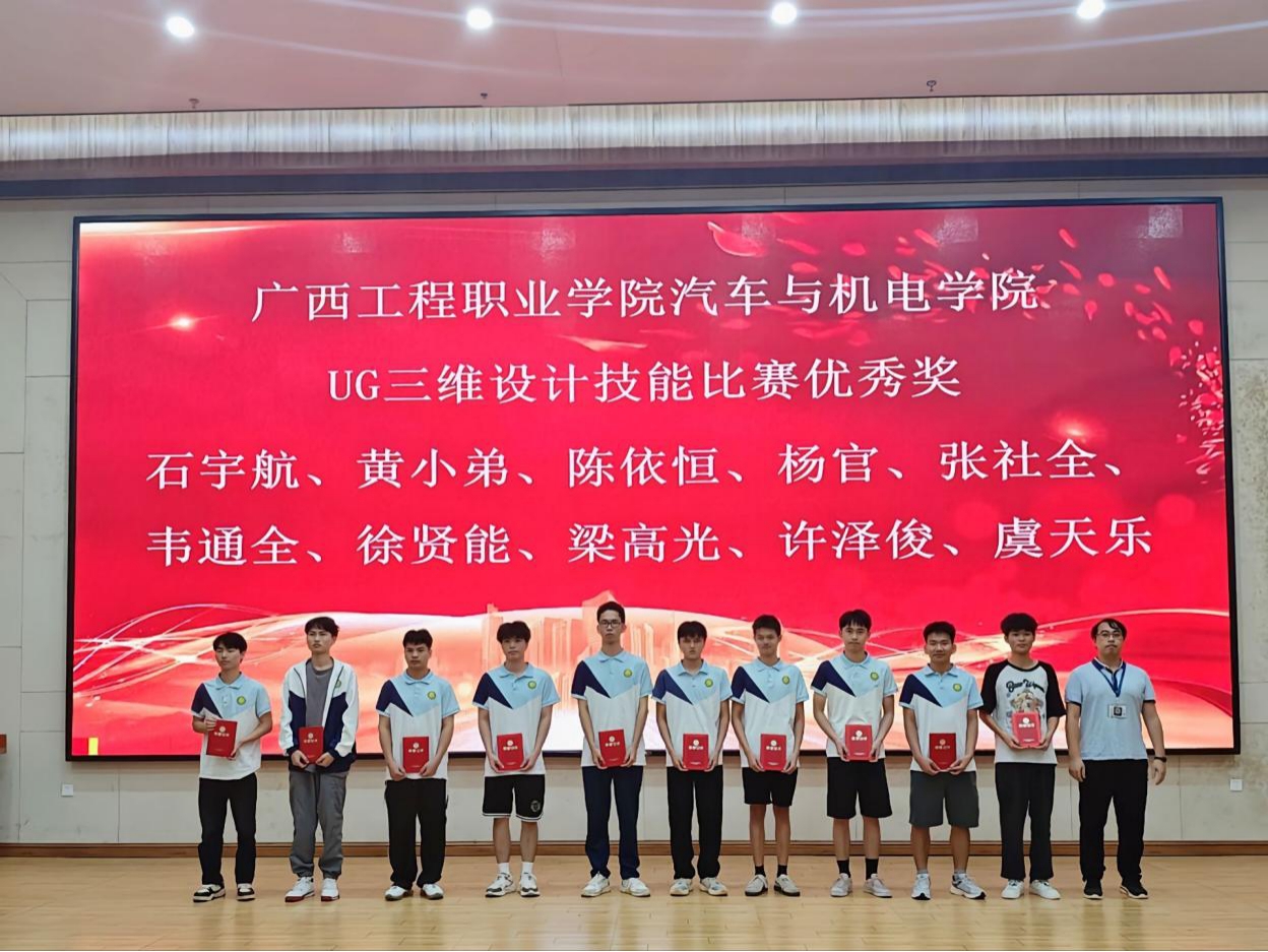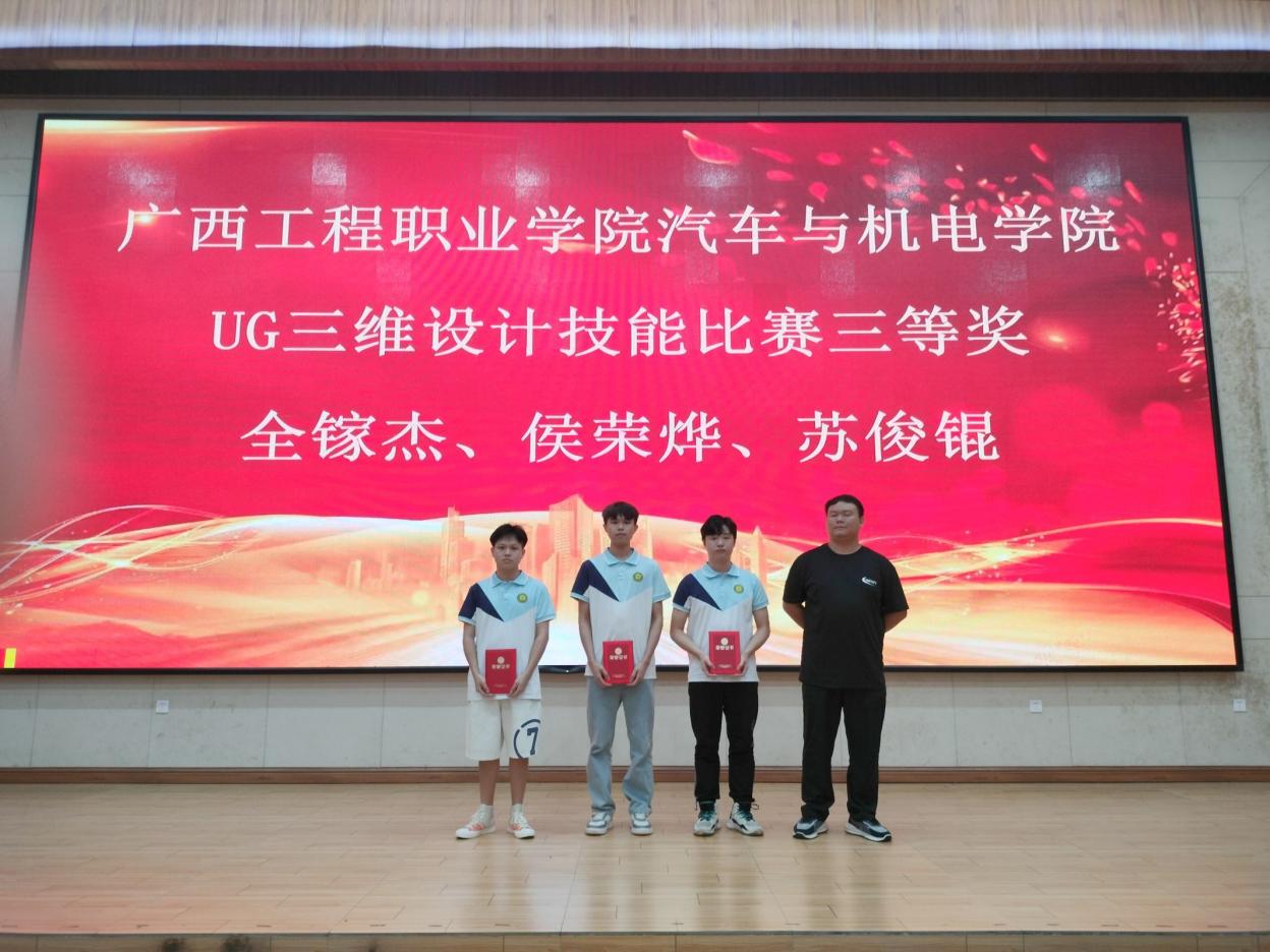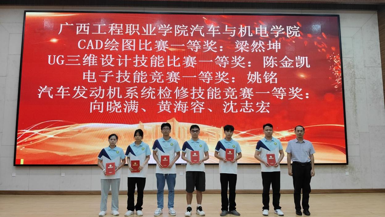黄德伟副校长为获得2024年CAD绘图比赛、UG三维设计技能比赛、电子技能竞赛、汽车发动机系统检修技能竞赛一等奖的参赛选手颁发证书