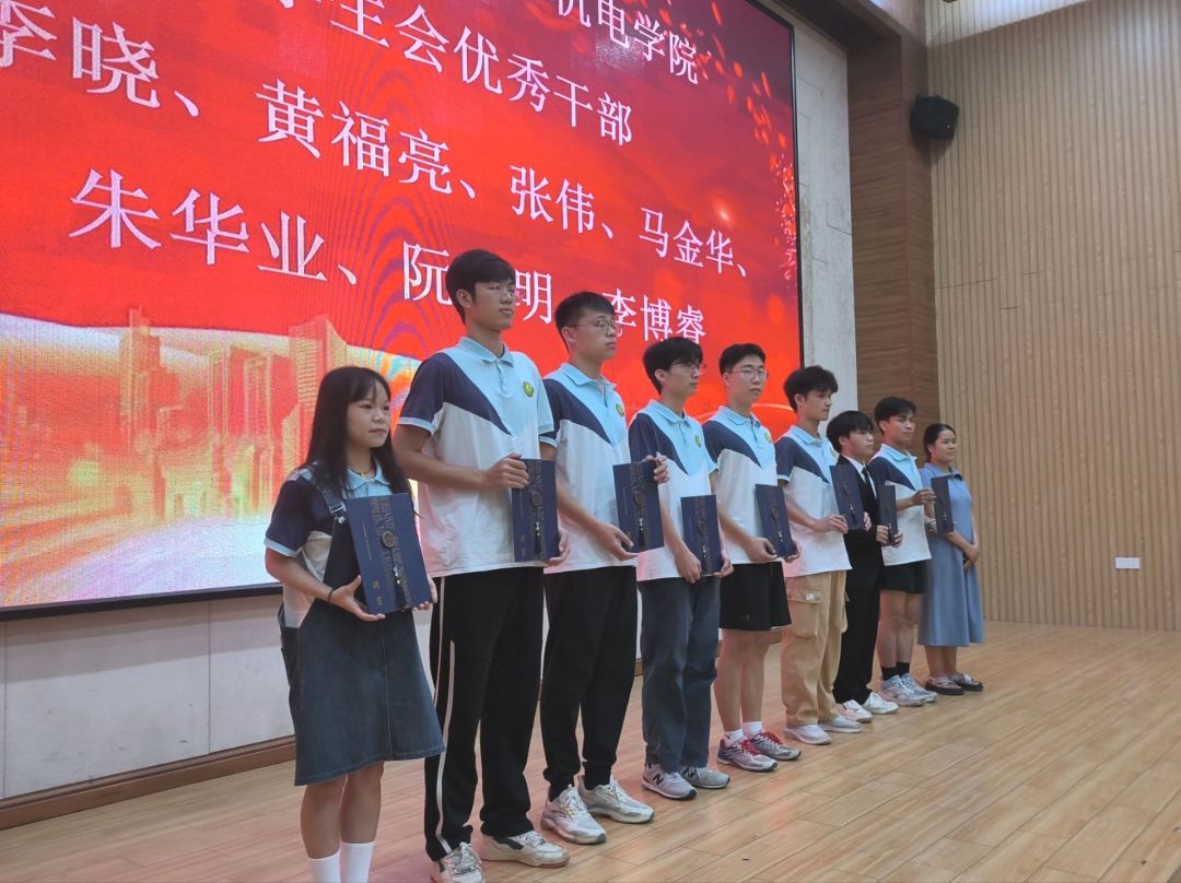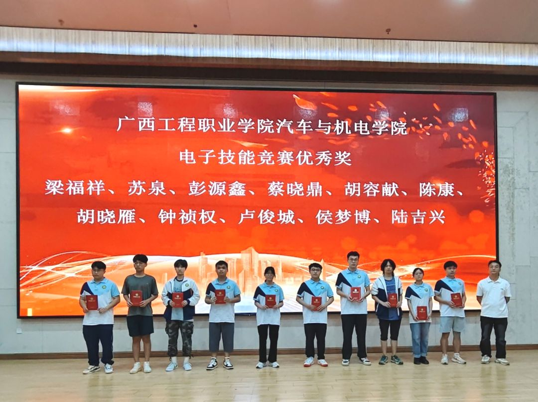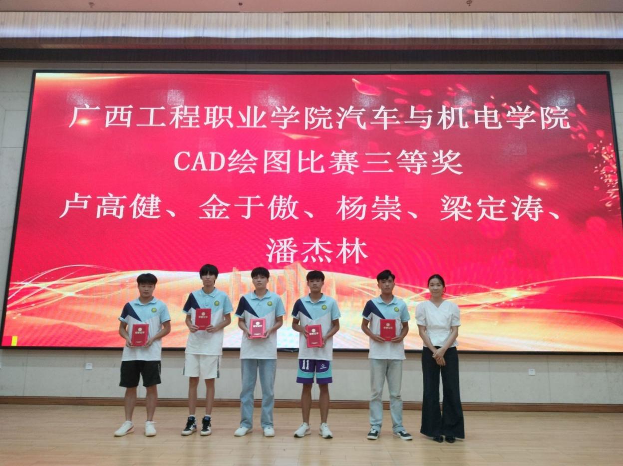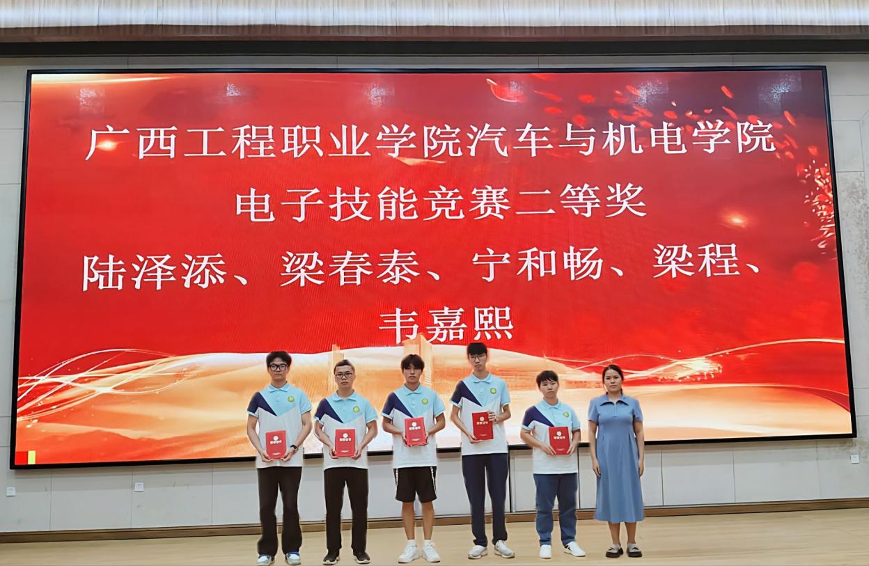 黄德伟副校长为获得2024年CAD绘图比赛、UG三维设计技能比赛、电子技能竞赛、汽车发动机系统检修技能竞赛一等奖的参赛选手颁发证书
