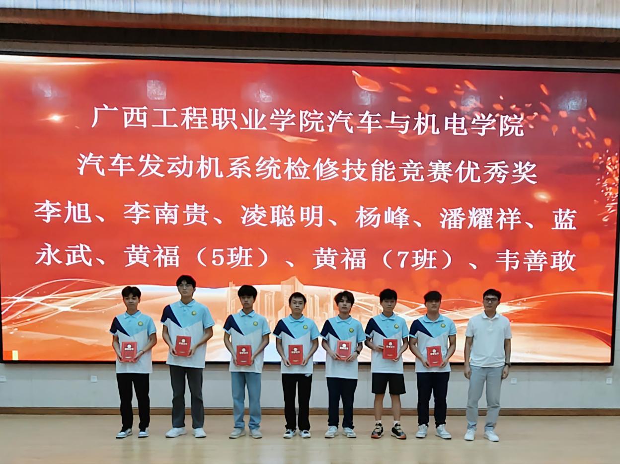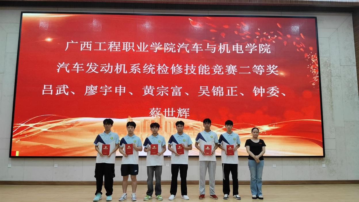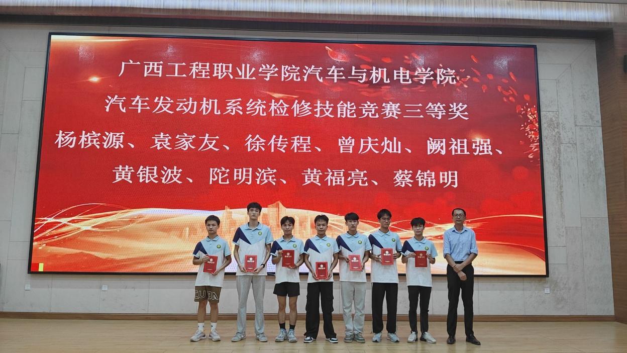 梁欣欣副院长为获得“汽车发动机系统检修技能竞赛”二等奖的参赛选手颁发证书